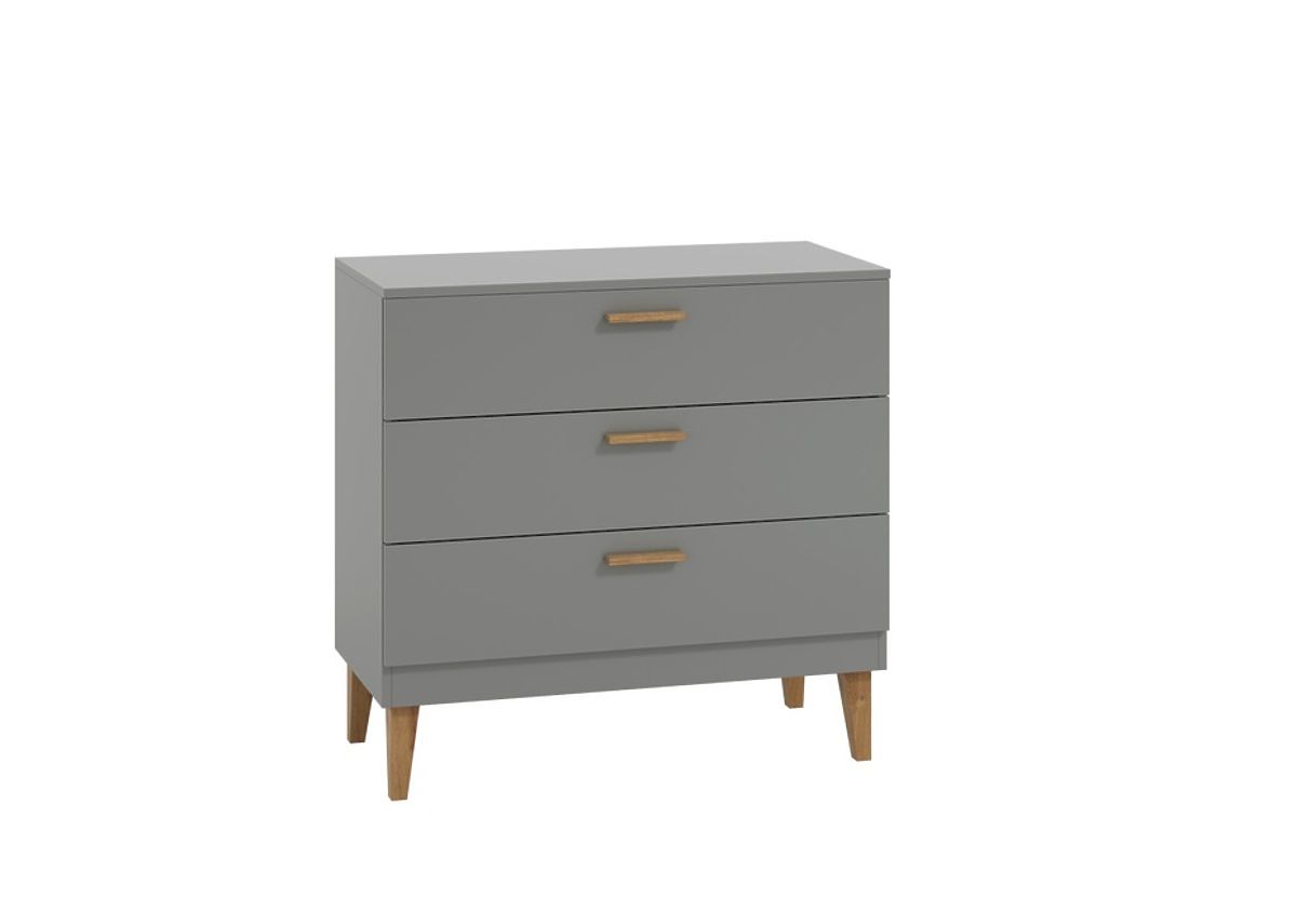 Moderní šedá komoda KUBI se 3 prostornými šuplíky. Komoda je vhodná do dětských pokojů pro děti i studenty. Nadčasový skandinávský styl komodě svědčí a skvěle .. více
