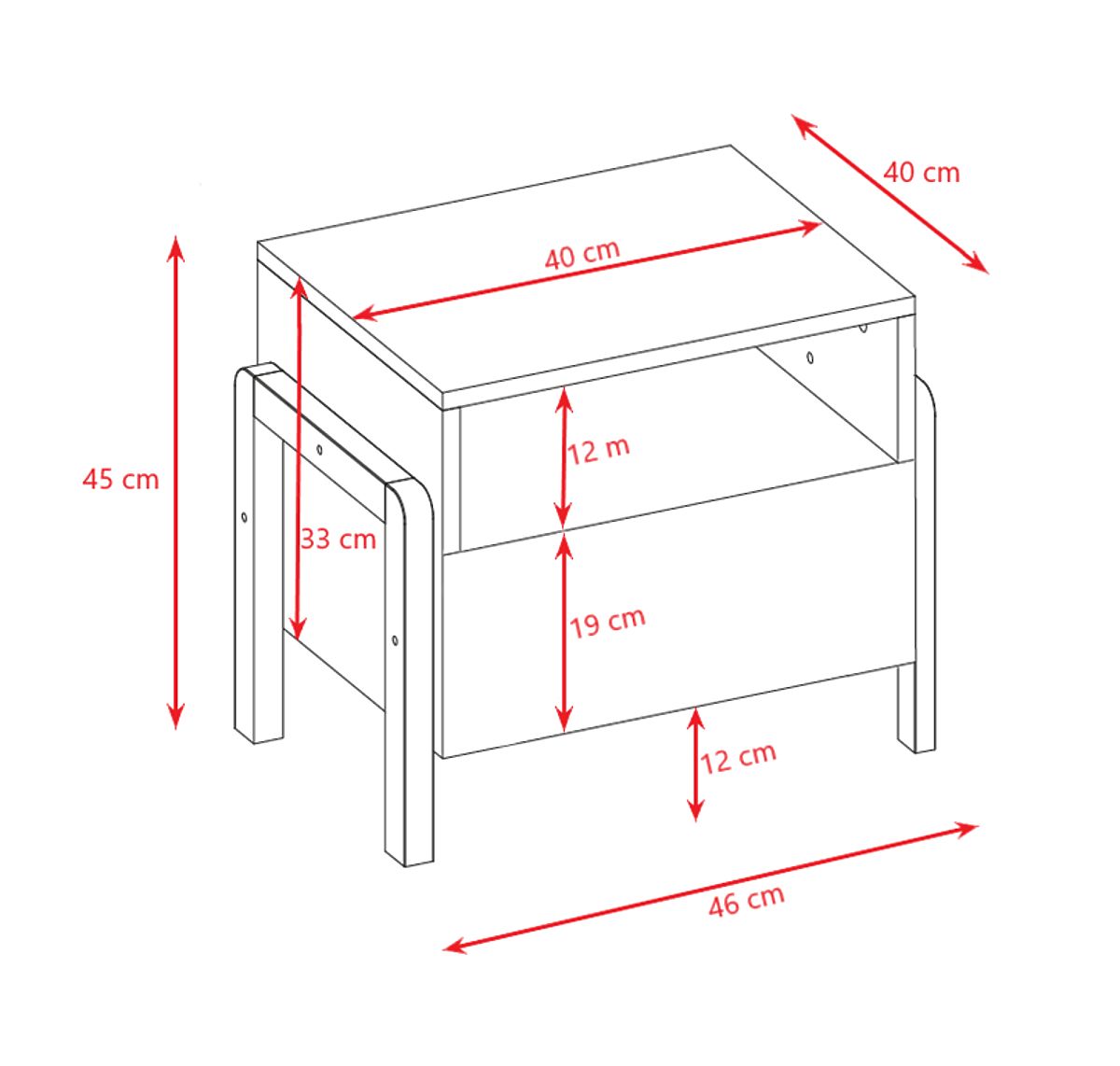Stolek má jeden praktický uzavíratelný šuplík a jeden otevřený prostor, který nabízí pohodlný přístup k předmětům denní potřeby.