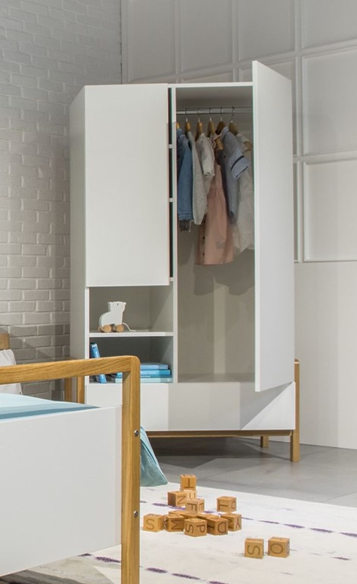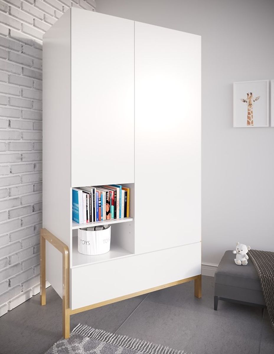 Krásná bílá dvoudveřová šatní skříň Viktor ve skandinávském stylu dodá šmrnc jak dívčímu, tak chlapeckému pokoji. Toto originální řešení skříně nabízí spoustu úložného prostoru.