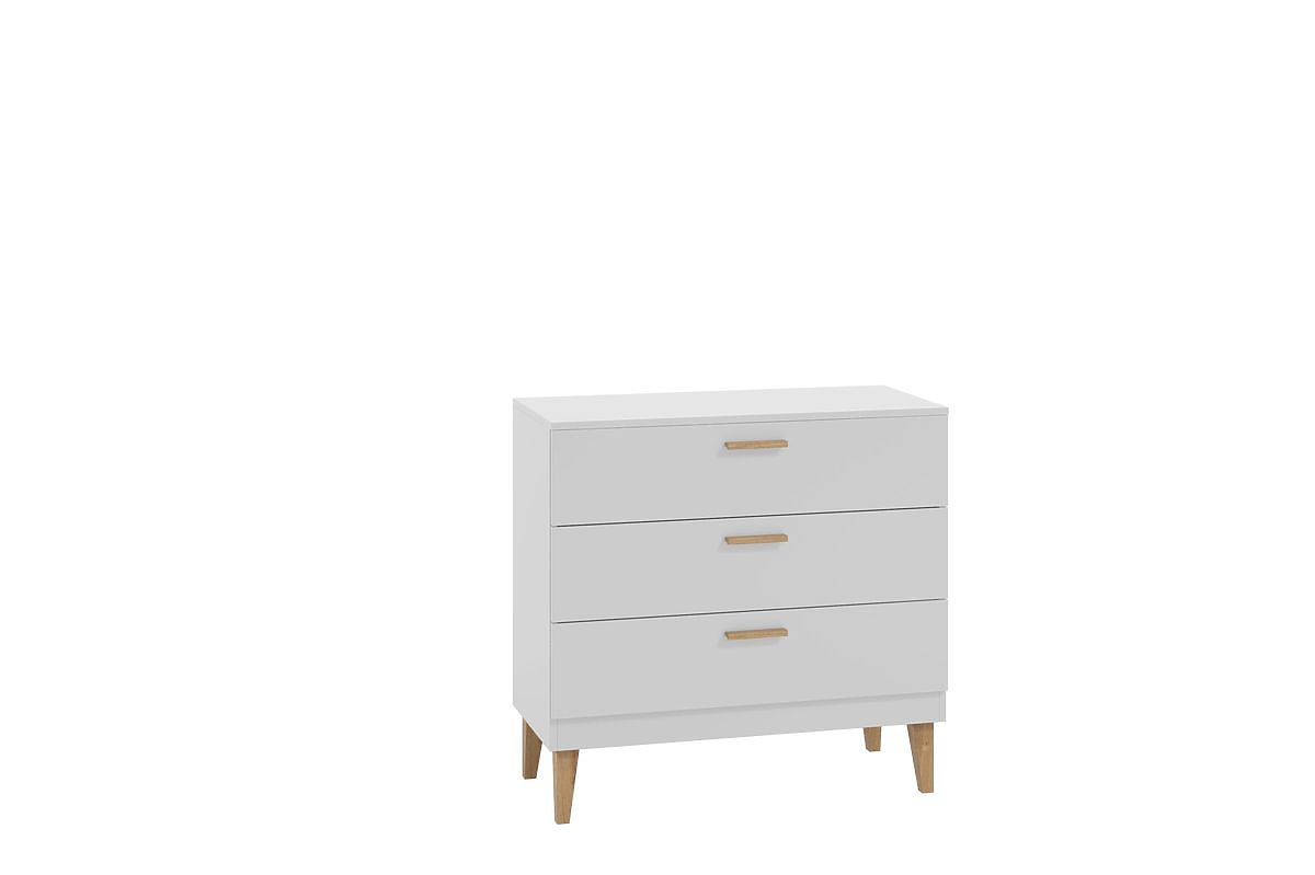 Komoda nabízí tři prostorné zásuvky, které jsou vybaveny systémem tichého zavírání. Komodu lze přimontovat ke zdi pro maximální bezpečnost dětí.