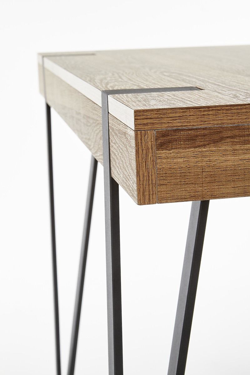 Pracovní deska je vyrobena z laminované MDF desky v barvě medového ořechu. Konstrukce je vyrobena z práškově lakované oceli v černé barvě.