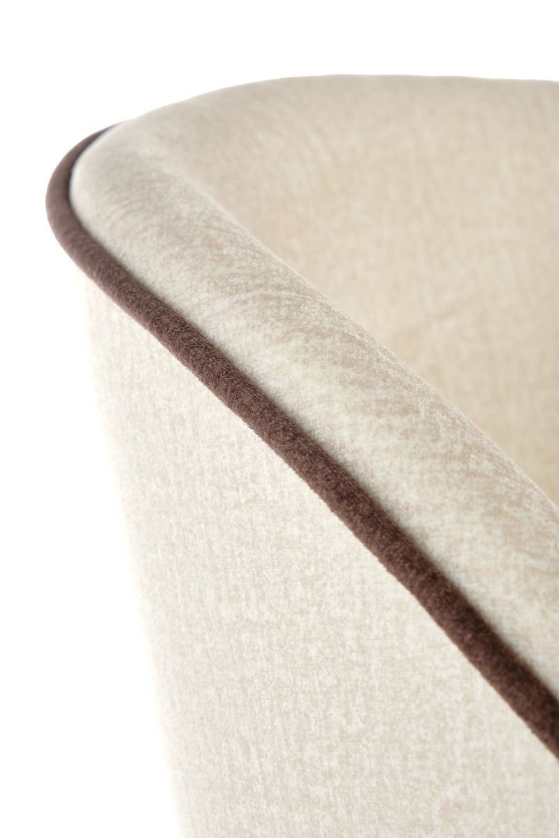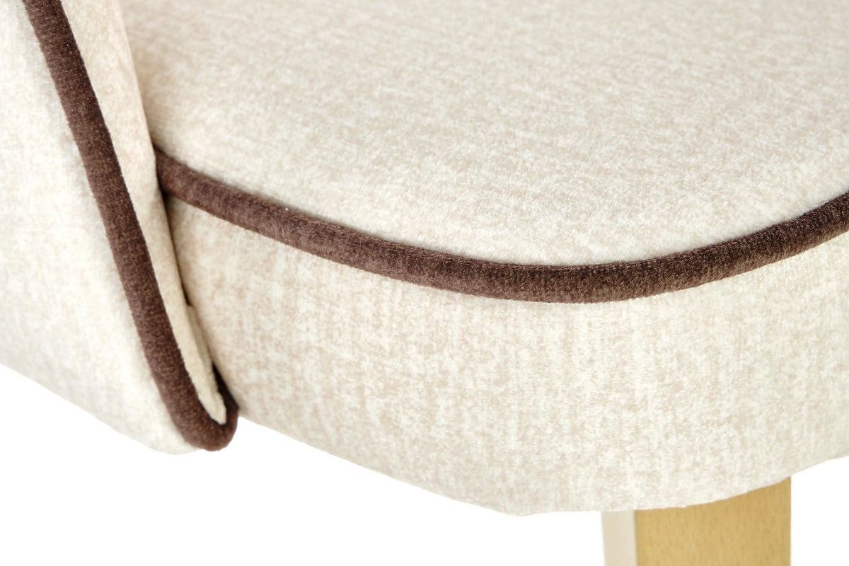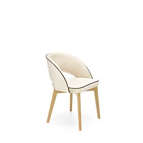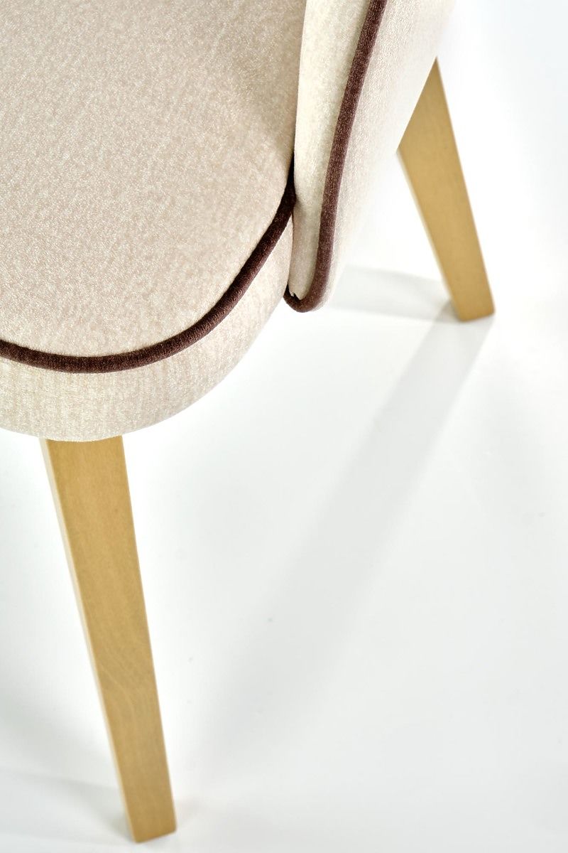Konstrukce je vyrobena z masivního bukového dřeva v odstínu medový dub. Sedák i opěrka jsou potaženy sametovou látkou krémové barvy s černými detaily.