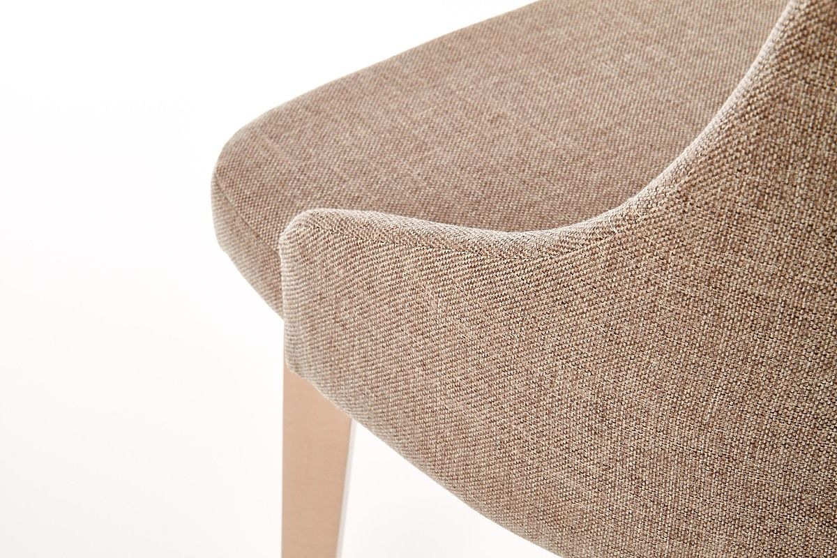 Konstrukce židle je vyrobena z masivního bukového dřeva v odstínu dub sonoma. Sedák i opěrák jsou čalouněny příjemnou látkou hnědé barvy.
