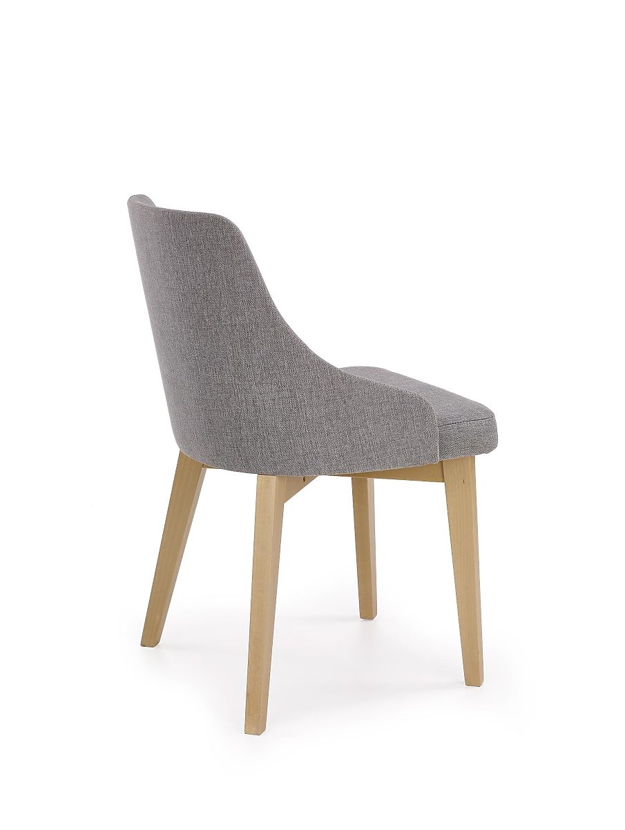Konstrukce židle je vyrobena z masivního bukového dřeva v odstínu dub sonoma. Sedák i opěrák jsou čalouněny příjemnou látkou světle šedé barvy.