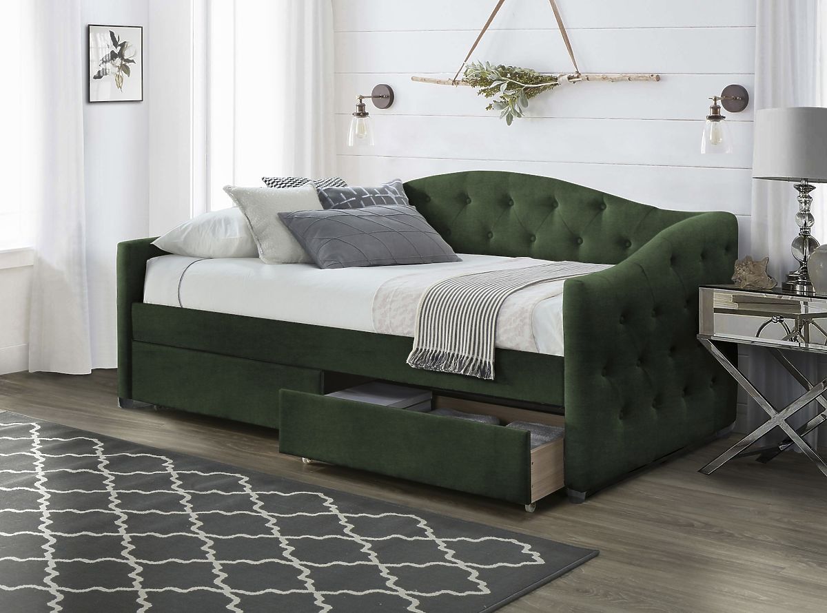 Lukafurniture.cz » Postele / Jednolůžkové postele / Čalouněná postel s šuplíky ALOHA 90 x 200 cm - Temně zelená