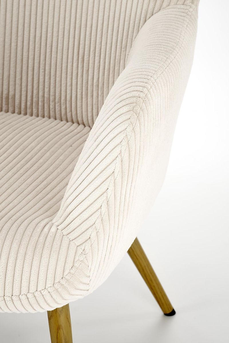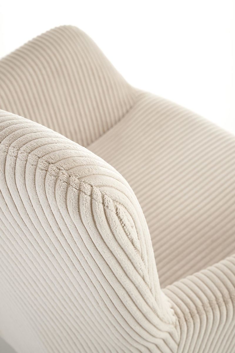 Manšestr v krémové barvě dodává křeslu jemný a zároveň sofistikovaný vzhled. Tato látka je nejenom příjemná na dotek, ale také odolná a snadno udržovatelná, což zajišťuje dlouhou životnost vašeho křesla.