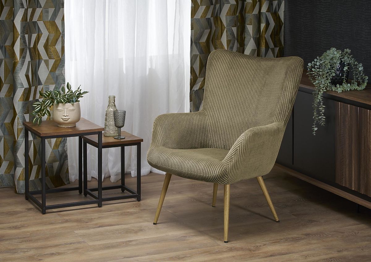 Čalouněné křeslo Amaro bude ideální volbou pro ty, kteří hledají spojení pohodlí s elegancí. Manšestr v olivové barvě dodává křeslu jemný a zároveň .. více