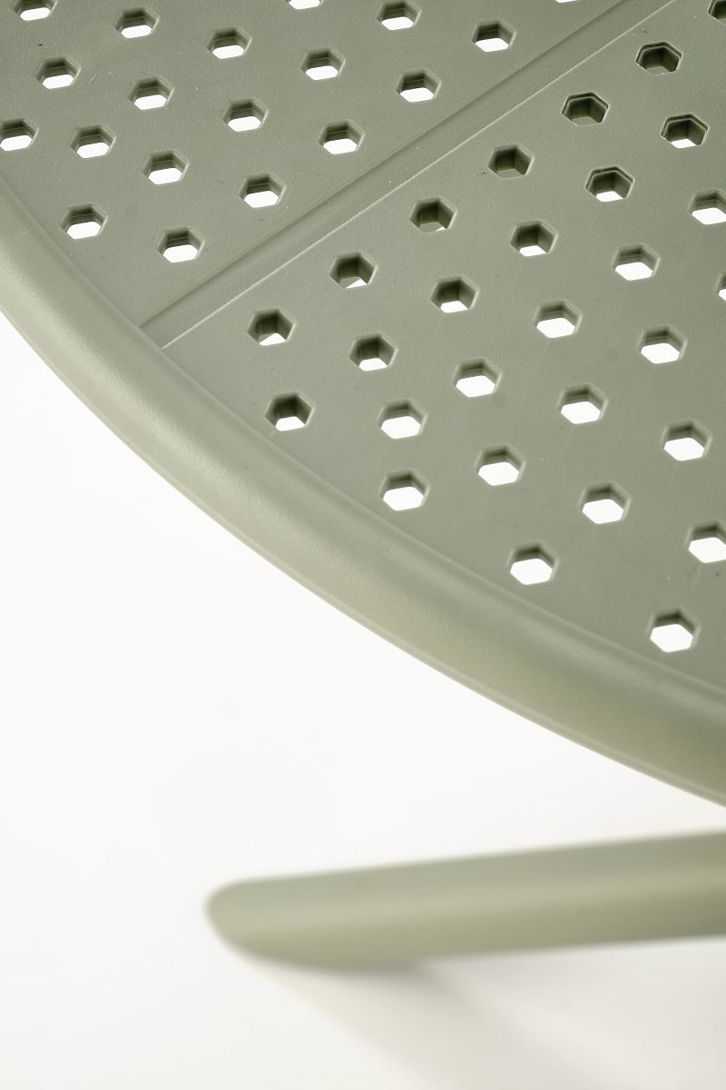 Zahradní stůl Calvo se stane praktickým prvkem vašeho venkovního posezení. Jeho kulatý tvar a jemný odstín mátové barvy přinesou do vaší zahrady nebo terasy nádech svěžesti a elegance.