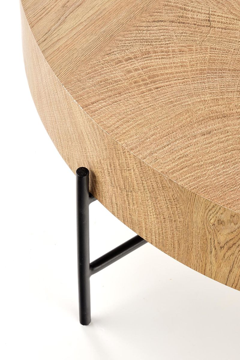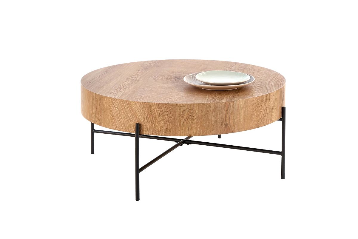 Konferenční stolek Brooklyn je unikátní kombinací robustního válcovitého tvaru a vysoké vzdušnosti. Tento kontrast mu dodávají subtilní kovové nohy, které vizuálně odlehčují celou konstrukci. Deska stolu s věrným dekorem dubu je k nerozeznání od masivního dřeva; viditelná struktura a léta vnáší do vašeho prostoru teplý a přírodní ráz. Jednoduchý kulatý stolek se stane ozdobou jakéhokoli prostředí.