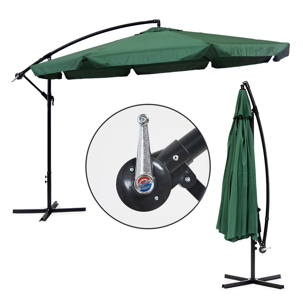 Lukafurniture.cz » Zahrada / Slunečníky a sluneční plachty / Velký skládací zahradní slunečník na výsuvném rameni 3,5m zelený