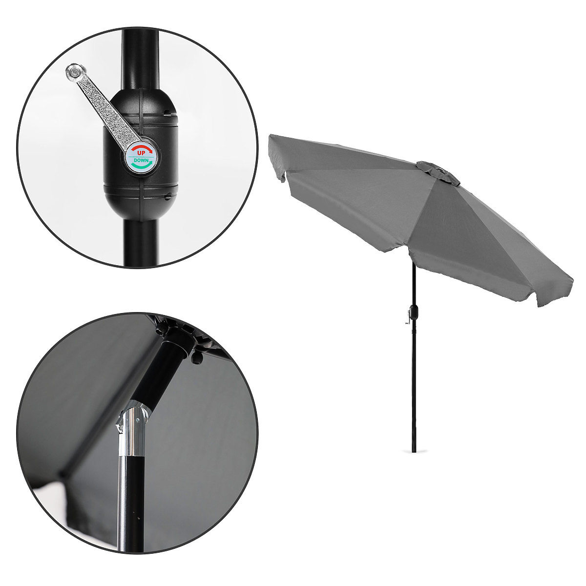 DOBŘE NAVRŽENÝSpeciální rukojeť vám usnadní rozložení slunečníku, stačí několik pohybů klikou a stínidlo se samo rozloží a rovnoměrně napne. Díky tomuto praktickému řešení budete schopni během krátké chvíle slunečník složit, když se počasí zhorší.