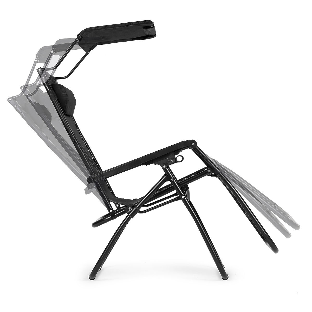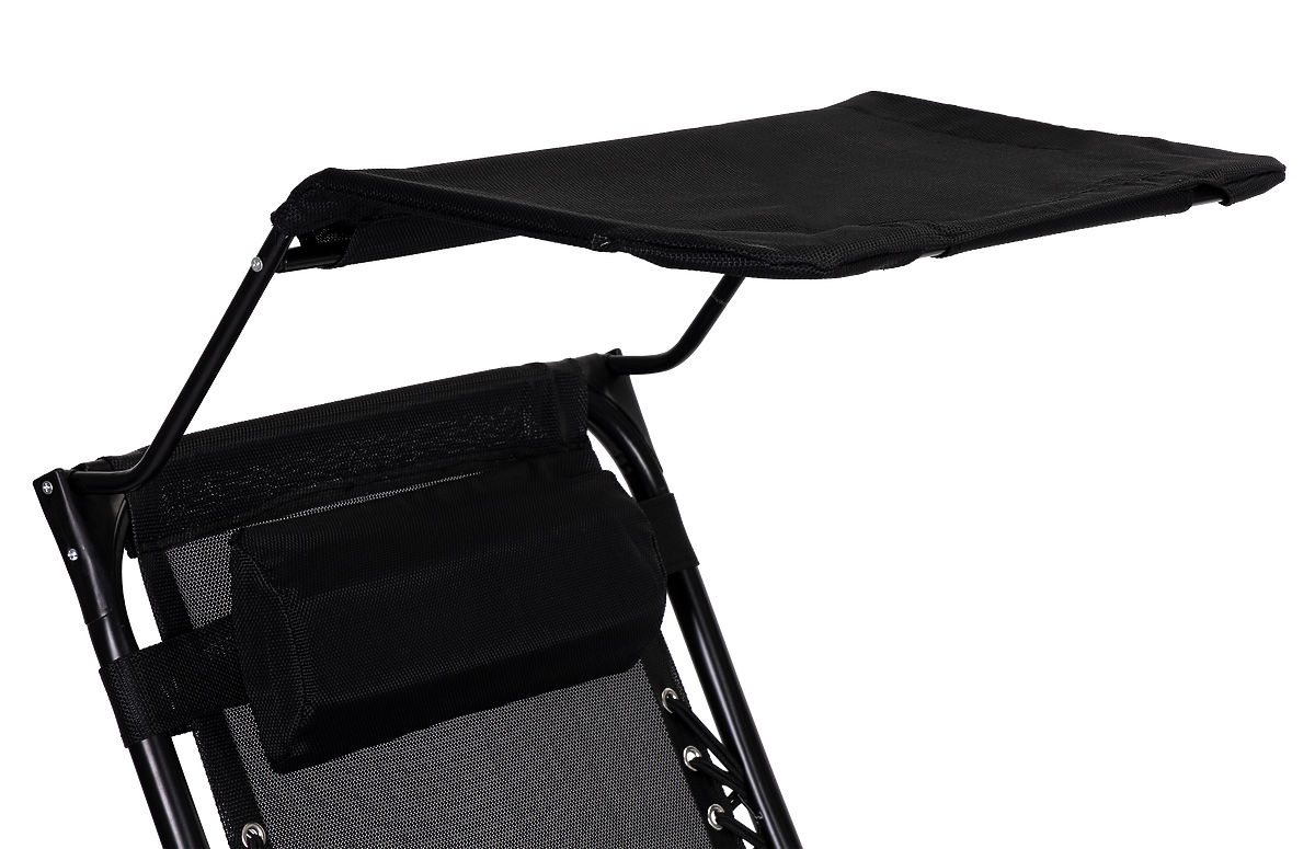 Lukafurniture.cz » Zahradní nábytek / Zahradní lehátka / Zahradní plážové lehátko s nastavitelným opěradlem a pohyblivou stříškou Modernhome - černé