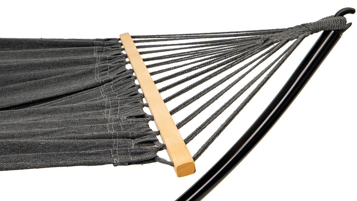 Houpací síť je vyrobena z odolného materiálu, který se dokonale přizpůsobí tělu. Dřevěné tyče, přes které jsou provlečeny upevňovací šňůry, zajišťují, že plocha určená k ležení je správně napnutá a nekroutí se.