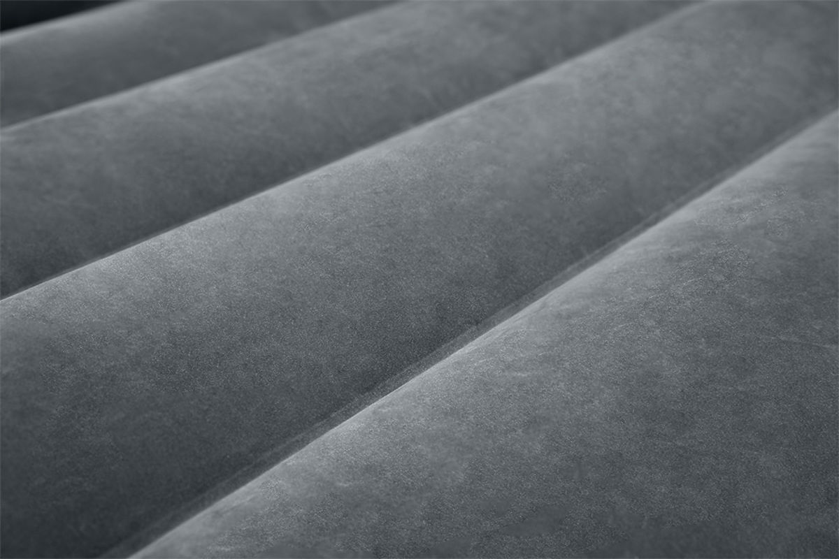 Velurová pohovka INTEX, o rozměrech 224 x 203 x 66 cm je ideální pro 2 osoby. Vyrobena z pevného PVC materiálu, nahoře potažena příjemným na dotek voděodolným velurem. Celá v příjemné šedé barvě, která se hodí do každého interiéru. Bostonský ventil umožňuje během minuty vypustit vzduch, složit a uložit do skříně.