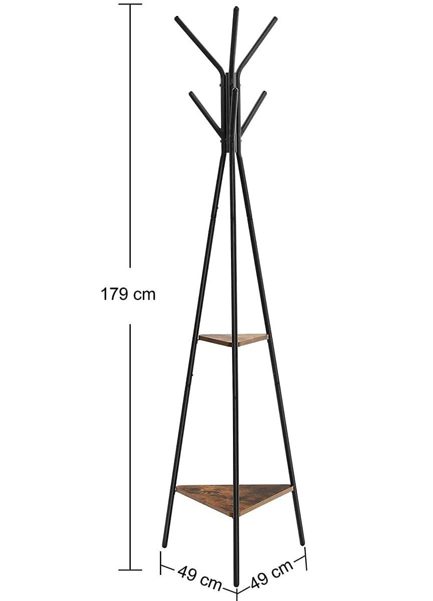 Tento produkt zabírá málo místa a má stabilní trojúhelníkovou základnu, díky které máme jistotu, že se produkt nebude naklánět s dalším zatížením. Kromě toho je produkt vybaven 6 zaoblenými háčky na zavěšení kabátů, bund, tašek nebo šál a čepic.