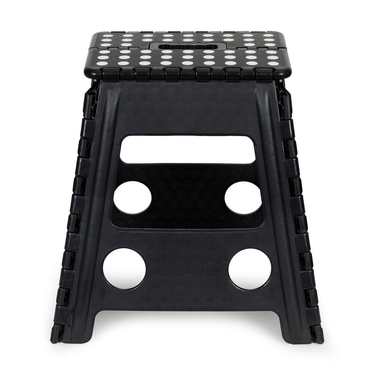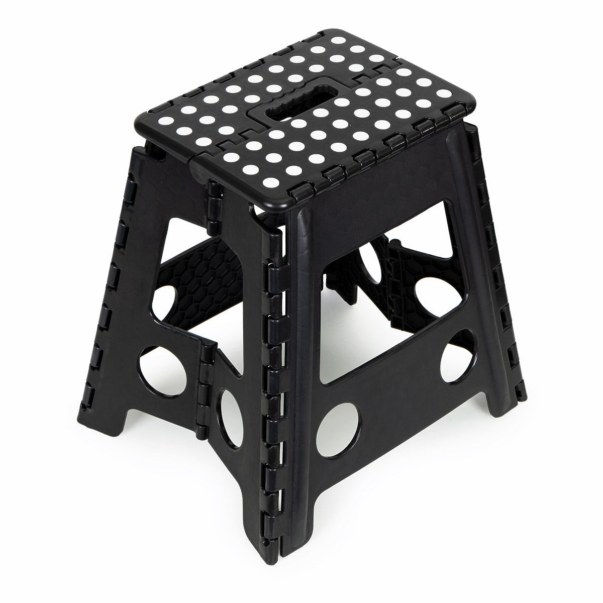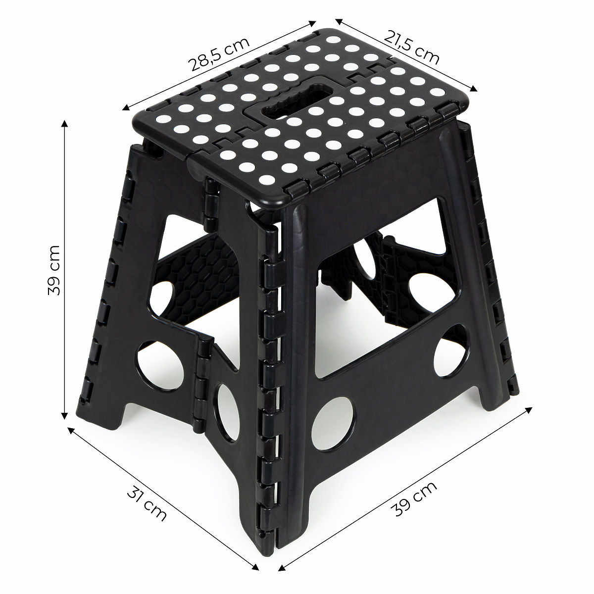 PROTISKLUZOVÉ PRVKYBezpečnost je pro nás prioritou. Naše skládací stolička je vybavena gumovými, protiskluzovými nožičkami, které zajišťují stabilitu na různých typech povrchů. Horní část-plošina je zakončena gumovými prvky, které stejně jako nožičky, zabraňují klouzání při vstupu na stoličku. Díky tomu se při používání budete cítit bezpečně.