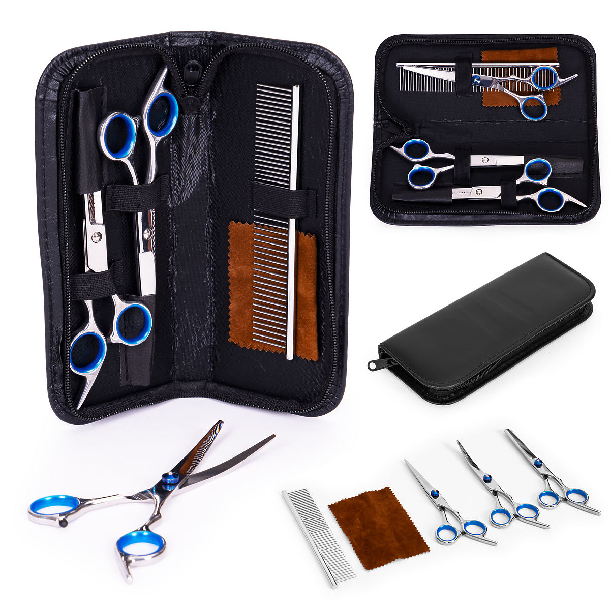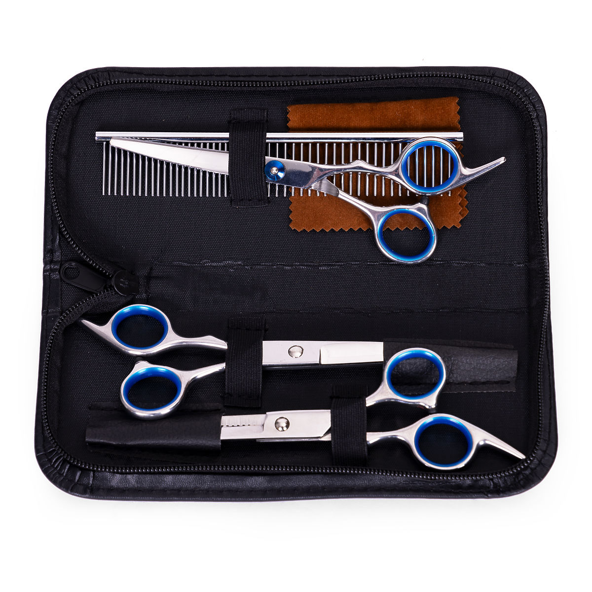 Groomingová sada na stříhání psů a koček s 3 páry nůžek, hřebenem a pouzdrem. .. více
