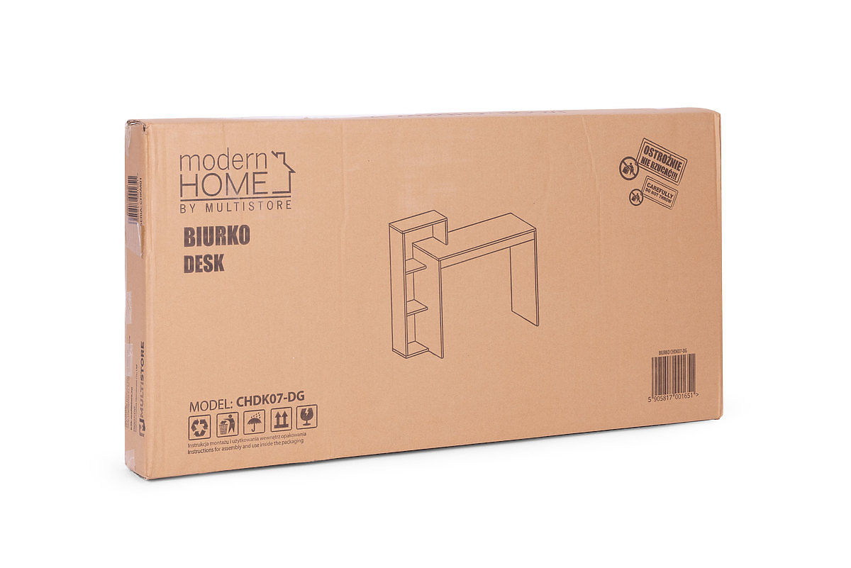 Moderní stůl a jednoduchý design, to je nabídka pro milovníky neobvyklého stylu a funkčnosti. Deska a police jsou vyrobeny z dřevotřísky, potažené laminátem v šedé barvě. Díky tomu nábytek jemně leskne a působí velmi luxusně.