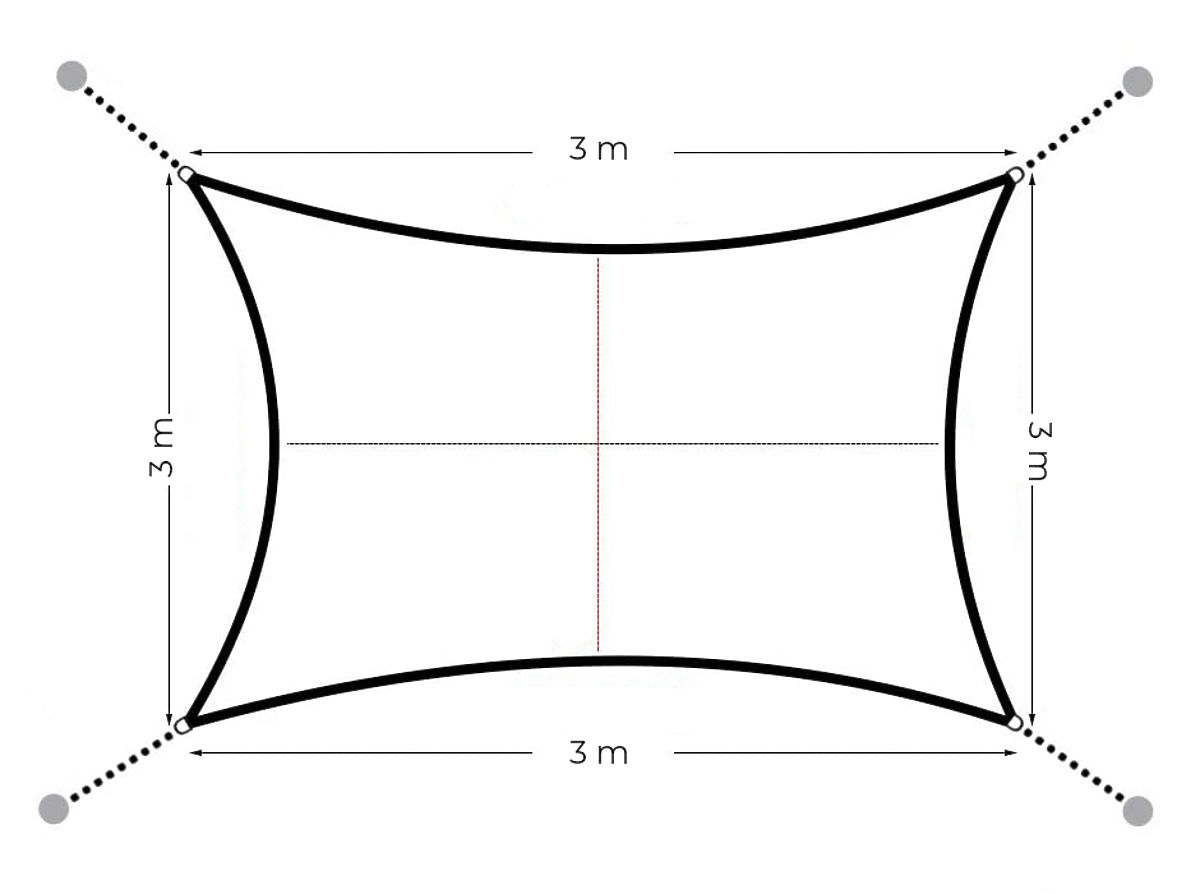 Správné napnutí plachty je velmi důležité, aby se nevytvářely nevzhledné záhyby a vodní kapsy. Proto je důležité stříšku napínat po úhlopříčkách materiálu (od rohu k rohu).
