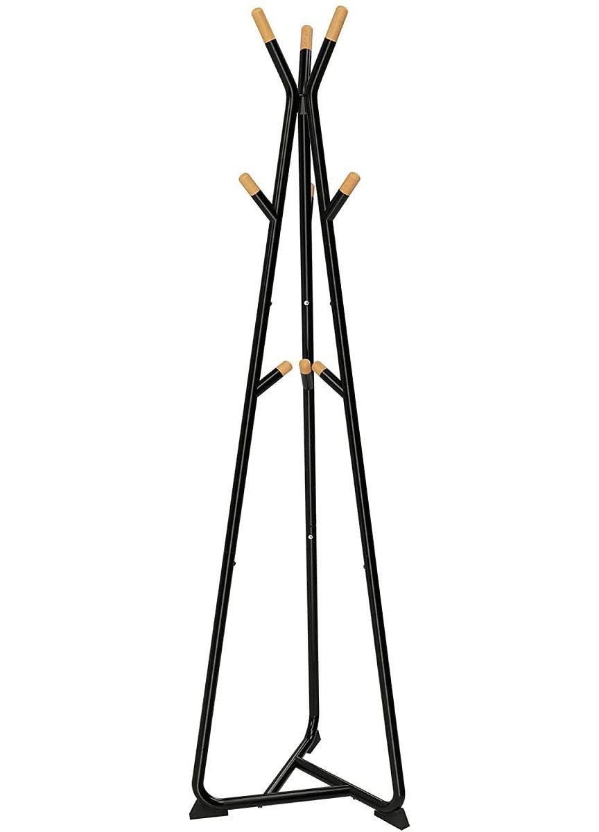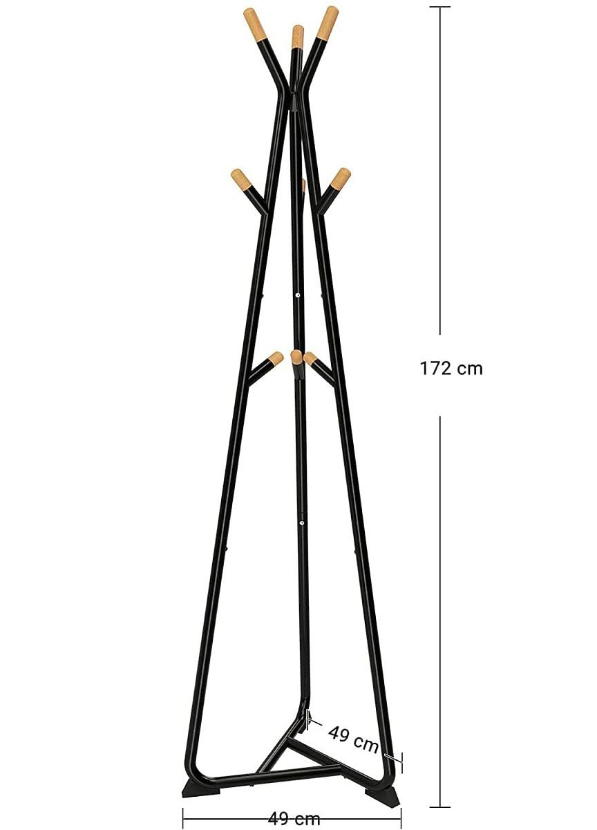 Tento prostorově úsporný produkt má stabilní trojúhelníkovou základnu, díky které máme jistotu, že se produkt nebude naklánět s přídavným zatížením. Navíc je produkt vybaven 9 zaoblenými bukovými háčky pro zavěšení kabátů, bund, tašek nebo šál a čepic.