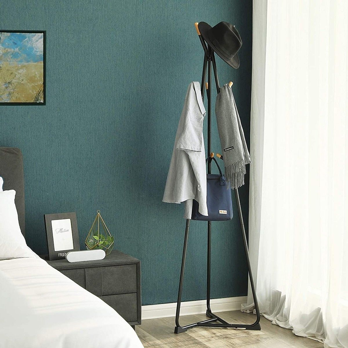 Trojúhelníková základna zajišťuje stabilitu podlahového věšáku.