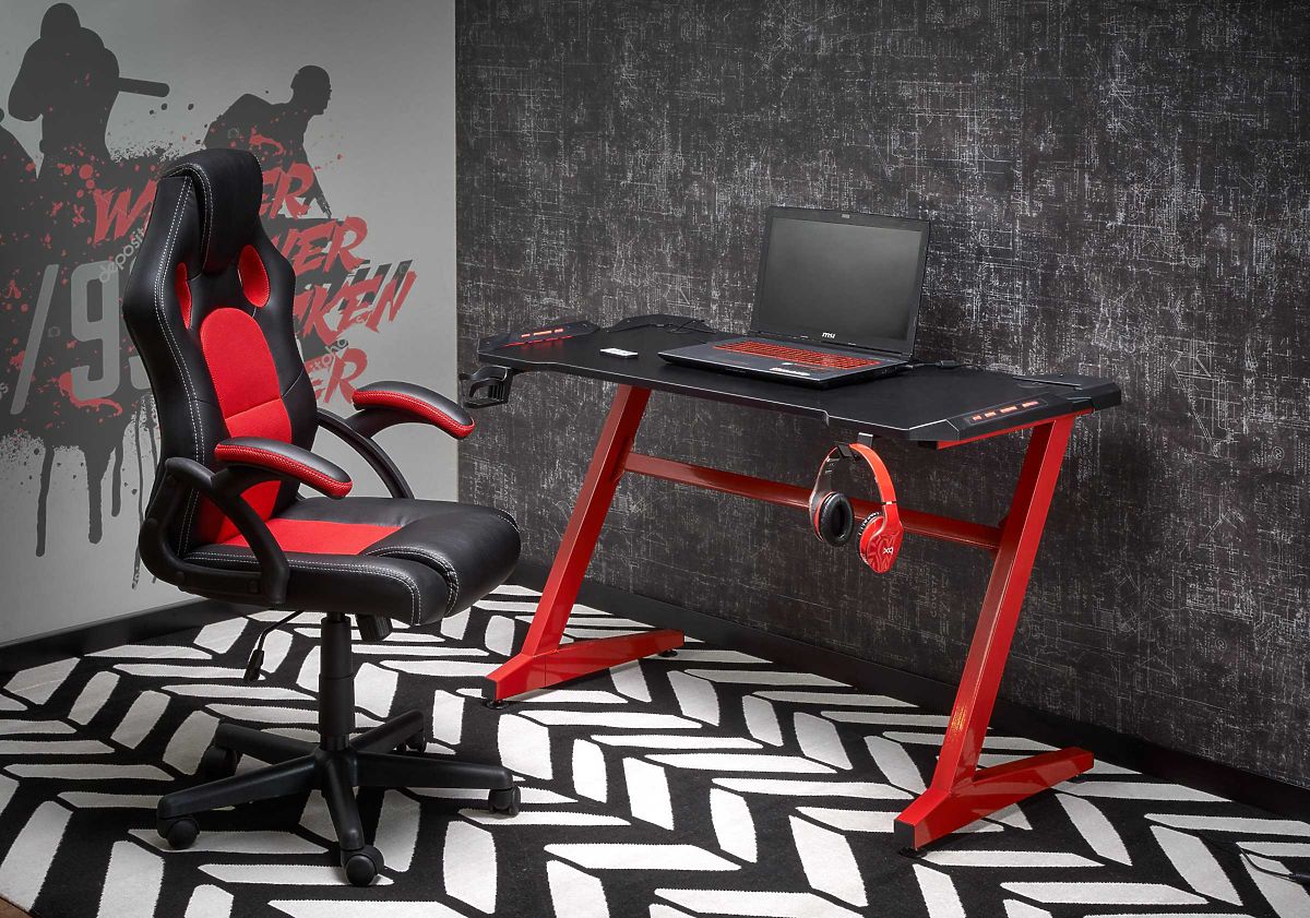Psací stůl s LED osvětlením, držákem na nápoj a příslušenství. .. více