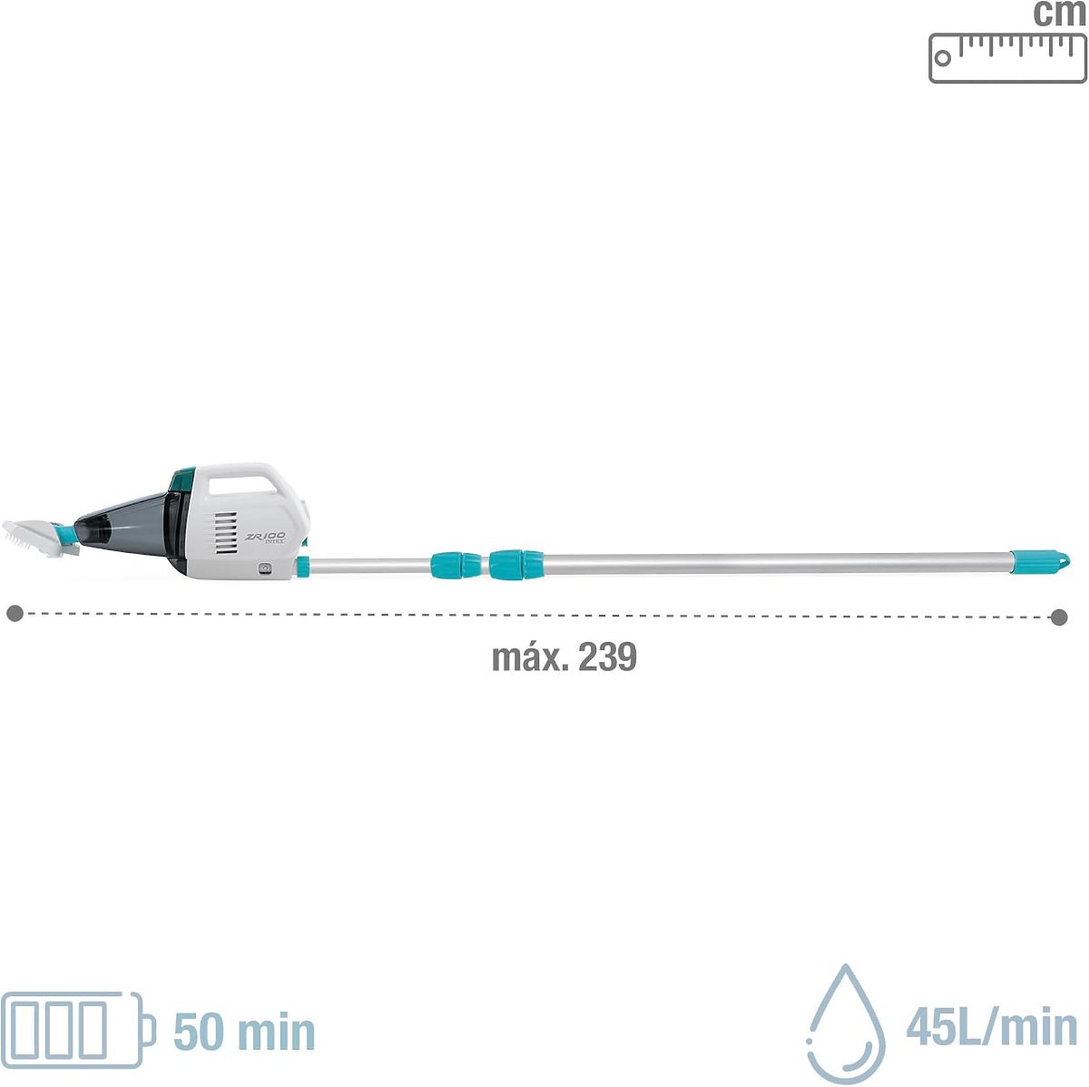 Udržování čistého bazénu nikdy nebylo tak snadné! Bezdrátový vysavač Intex Rechargeable Pool Vacuum je spolehlivým řešením pro každého majitele zahradního bazénu. Vybaven výkonnou Ni-MH baterií, umožňuje 50 minut nepřetržitého provozu na jedno nabití, účinně odstraňuje nečistoty. Díky teleskopické tyči o délce 239 cm a vyměnitelným kartáčovým nástavcům dosáhne zařízení i na těžko přístupná místa. Vodotěsnost na úrovni IPX8 zaručuje plnou bezpečnost používání. Je to ideální volba pro bazény o průměru do 5,49 m. Zajistěte si křišťálově čistou vodu a užívejte si bezproblémovou údržbu bazénu po celou sezónu!