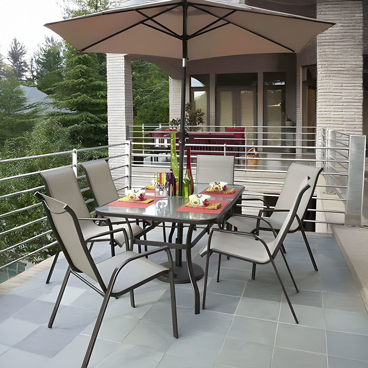 Zahradní stůl s tvrzeným sklem a otvorem na slunečník. .. více