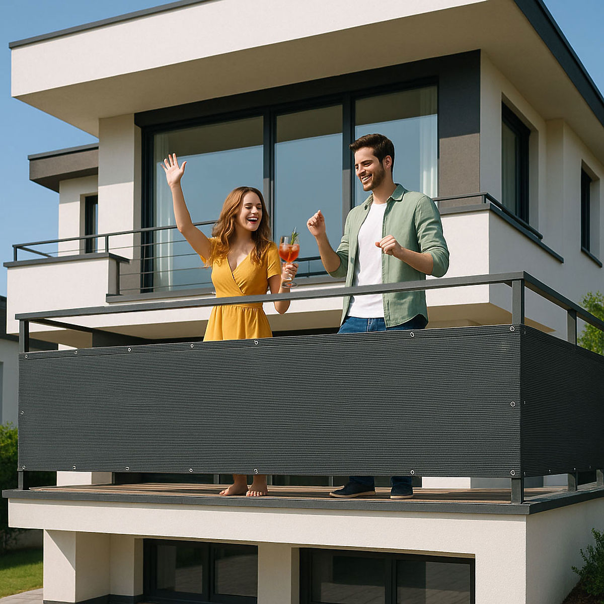 ODOLNOST A ELEGANCE V JEDNOMBalkónová clona je vyrobena z trvanlivého materiálu HDPE, který se vyznačuje vysokou odolností vůči mechanickému poškození a UV záření, což jí umožňuje zachovat si intenzivní barvu i přes dlouhodobé sluneční záření. Materiál neabsorbuje vlhkost, díky čemuž je odolný vůči plísni, deformacím a proměnlivým povětrnostním podmínkám. Lehká, ale odolná síť účinně stíní prostor, a zároveň umožňuje volný průtok vzduchu.