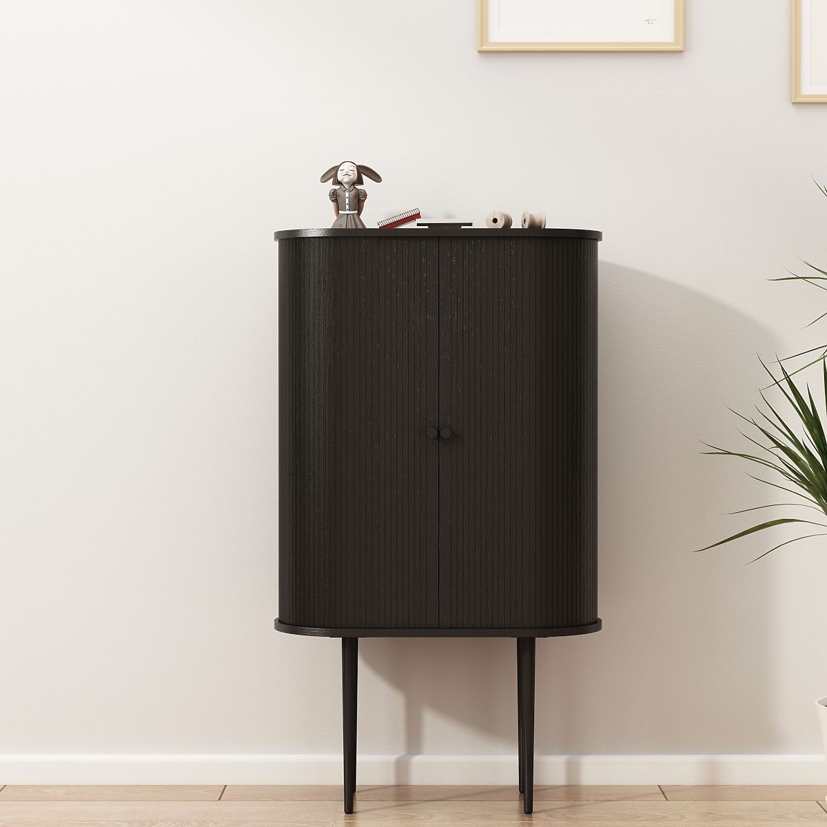 Komoda Clemente je stylový a praktický nábytek, který se skvěle hodí jak do moderních, tak i klasických interiérů. Její oválný tvar a vysoké nohy jí dodávají lehkost a eleganci. Díky dveřím z masivního dubového dřeva, které se posouvají do stran a jsou zdobeny dekorativními lamelami, komoda zajišťuje snadný přístup k uloženým věcem a dodává interiéru jedinečný charakter. Korpus z melaminové desky a pevné kovové nohy komplexně podtrhují vysokou kvalitu a styl komody Clemente. Podtrhněte eleganci svého interiéru a užívejte si každodenní pohodlí díky komodě Clemente - jedinečné kombinaci designového kouzla a solidnosti.