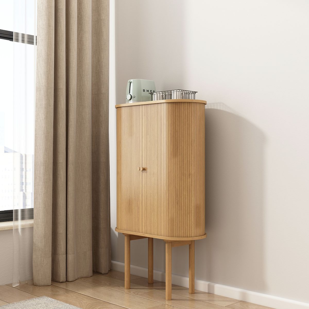 Stylová komoda Clemente s lamelami a posuvnými dubovými dveřmi. .. více