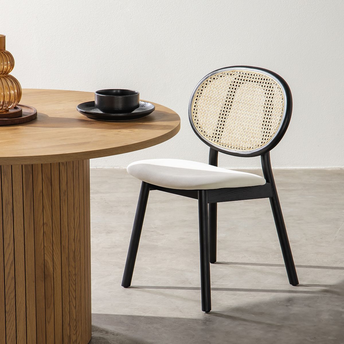 Židle Monet s černou jasanovou konstrukcí a ratanovým výpletem. .. více