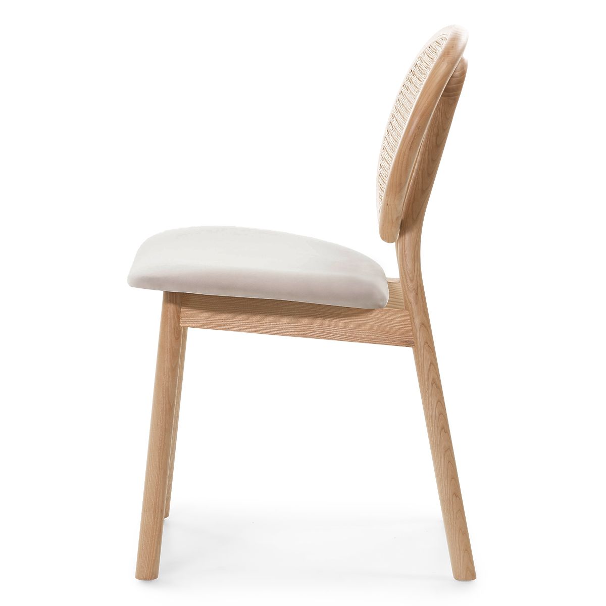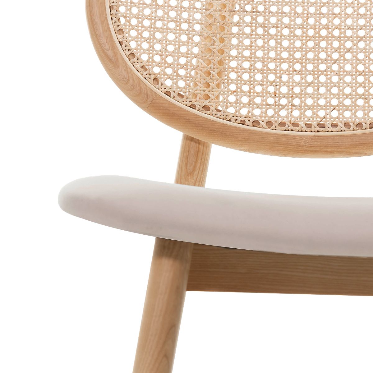 Lukafurniture.cz » Jídelna a kuchyně / Jídelní židle / Dřevěná židle Monet s vídeňským výpletem, ratan, velur, přírodní/světle hnědá