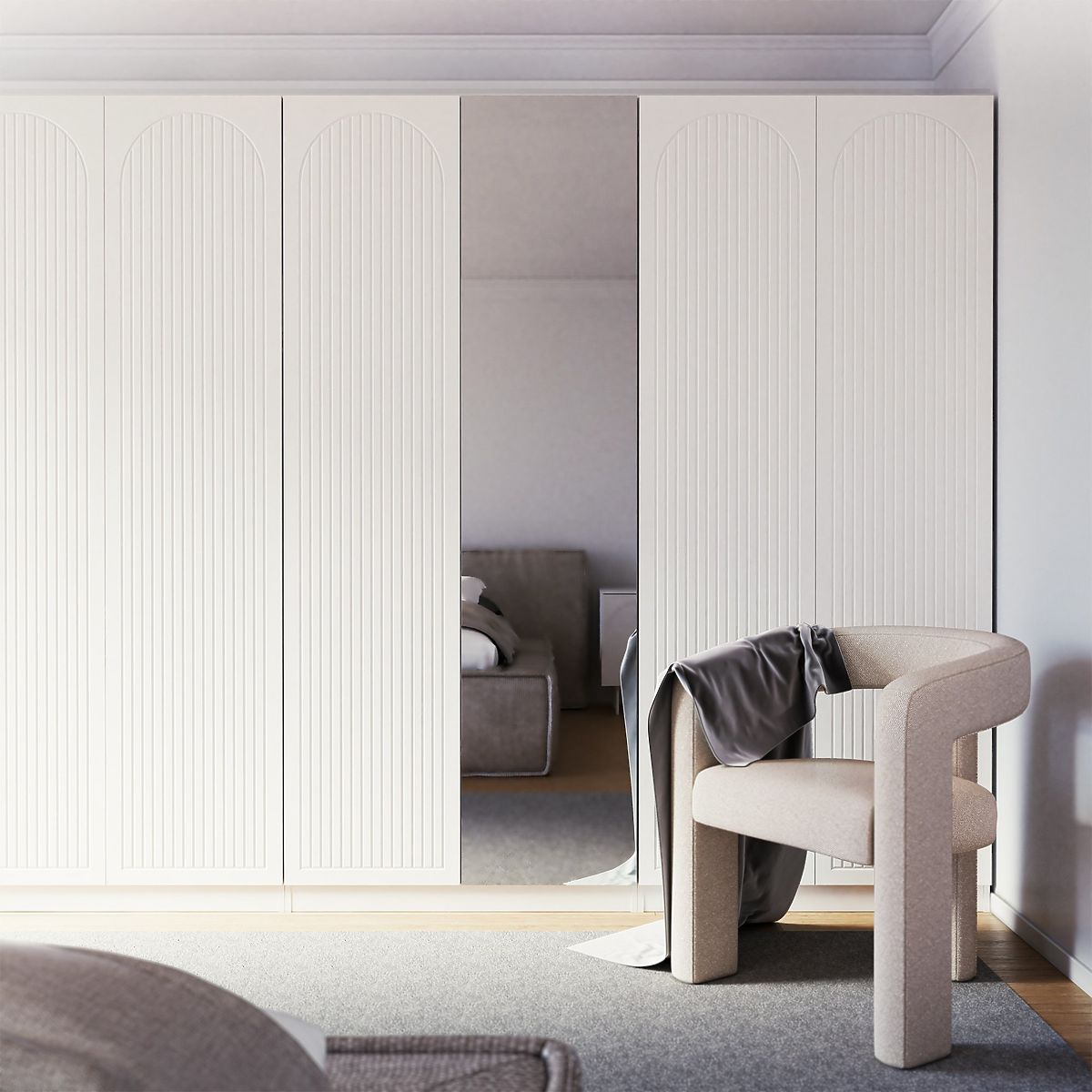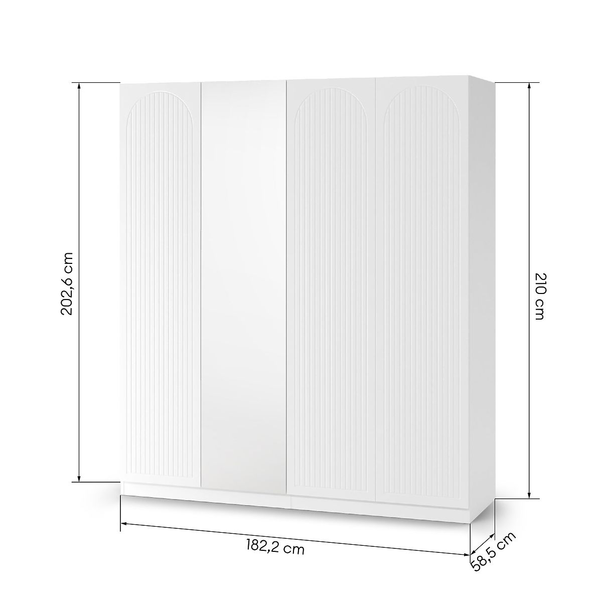 Lukafurniture.cz » Dům / Ložnice / Skříně / Čtyřdveřová skříň Neroli, drážky v oblouku/zrcadlo, bílá