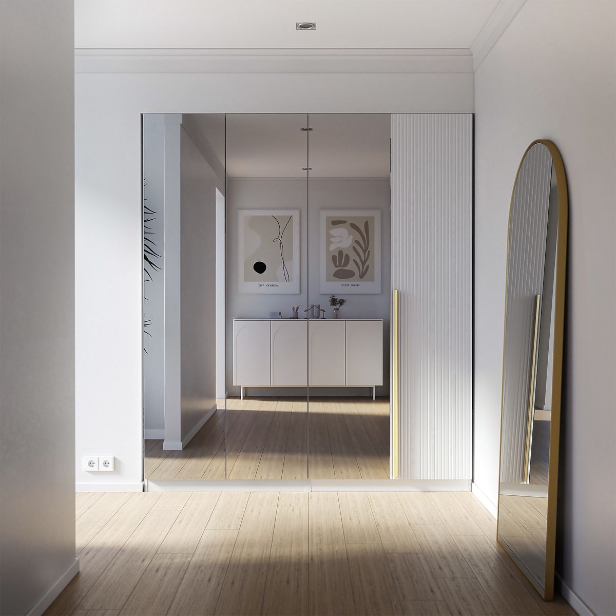 Skříň Neroli s drážkováním a zrcadlem pro jedinečný úložný prostor. .. více