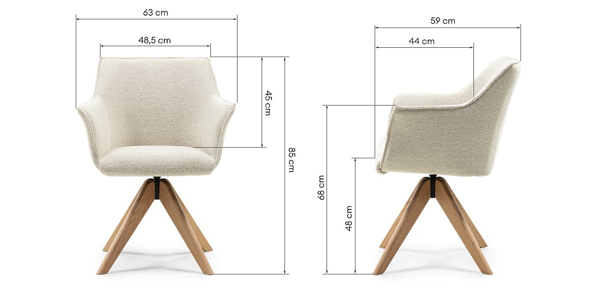 Otočná židle Positano s krémovým potahem a dubovými nohami. .. více