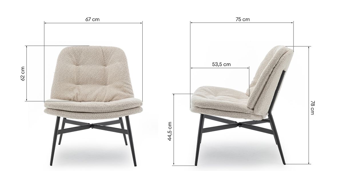 Relaxační křeslo Ravena s béžovým čalouněním a černými kovovými nohami. .. více