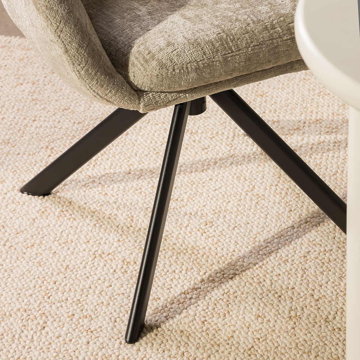 Židle Santos dokonale doplní váš prostor a umožní vám užívat si relaxaci každý den. Její sedák a opěradlo jsou potaženy látkou v jemné, světle béžové barvě, která se skvěle hodí k černým nohám s minimalistickým designem. Velmi praktickým prvkem tohoto modelu jsou područky, které výrazně zpříjemní používání. Křeslo Santos se vyznačuje inovativním přístupem, což dokonale ilustruje otočná základna. Díky ní můžete snadno najít ideální polohu přizpůsobenou vašim potřebám. Objevte, jak může Santos učinit společné jídlo mimořádně výjimečným. Nečekejte - objednejte si ještě dnes!