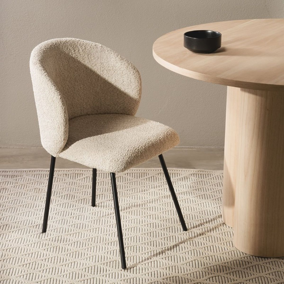 Židle Larisa kombinuje béžové čalounění s černými kovovými nohami. .. více
