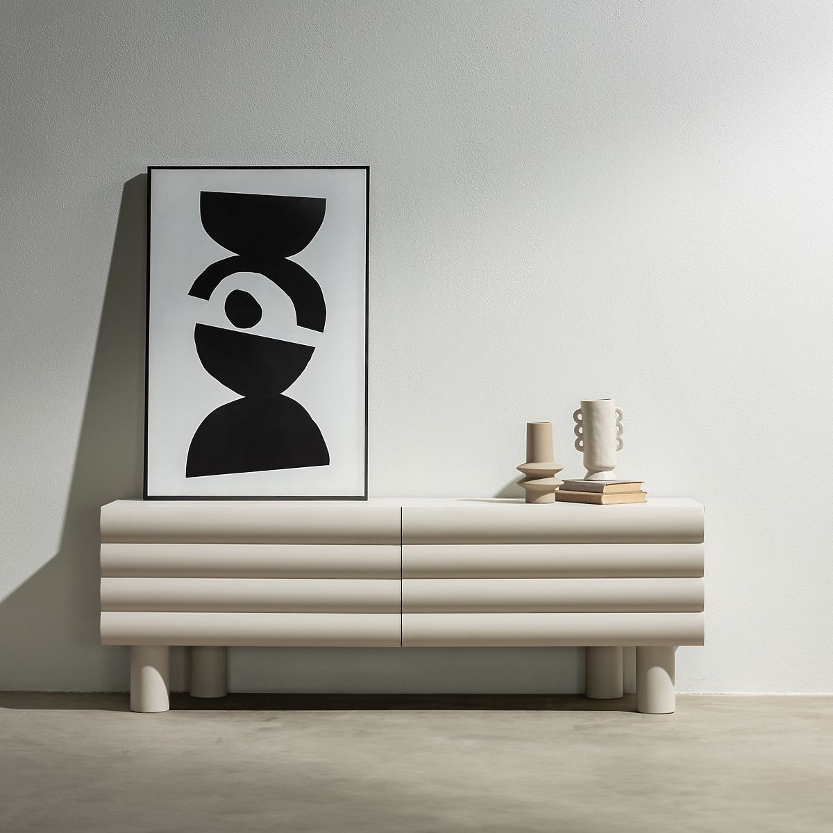 TV skříňka Anatra s rýhováním a béžovým zbarvením. .. více