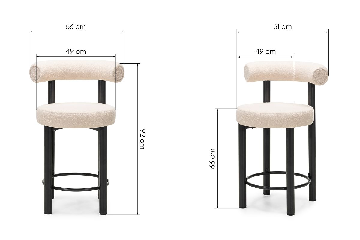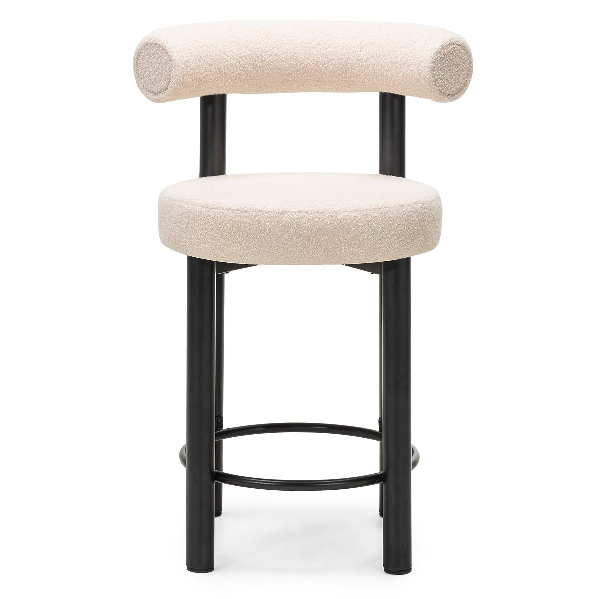 Stylová barová židle Pedro s béžovou tkaninou boucle a černými nohami. .. více