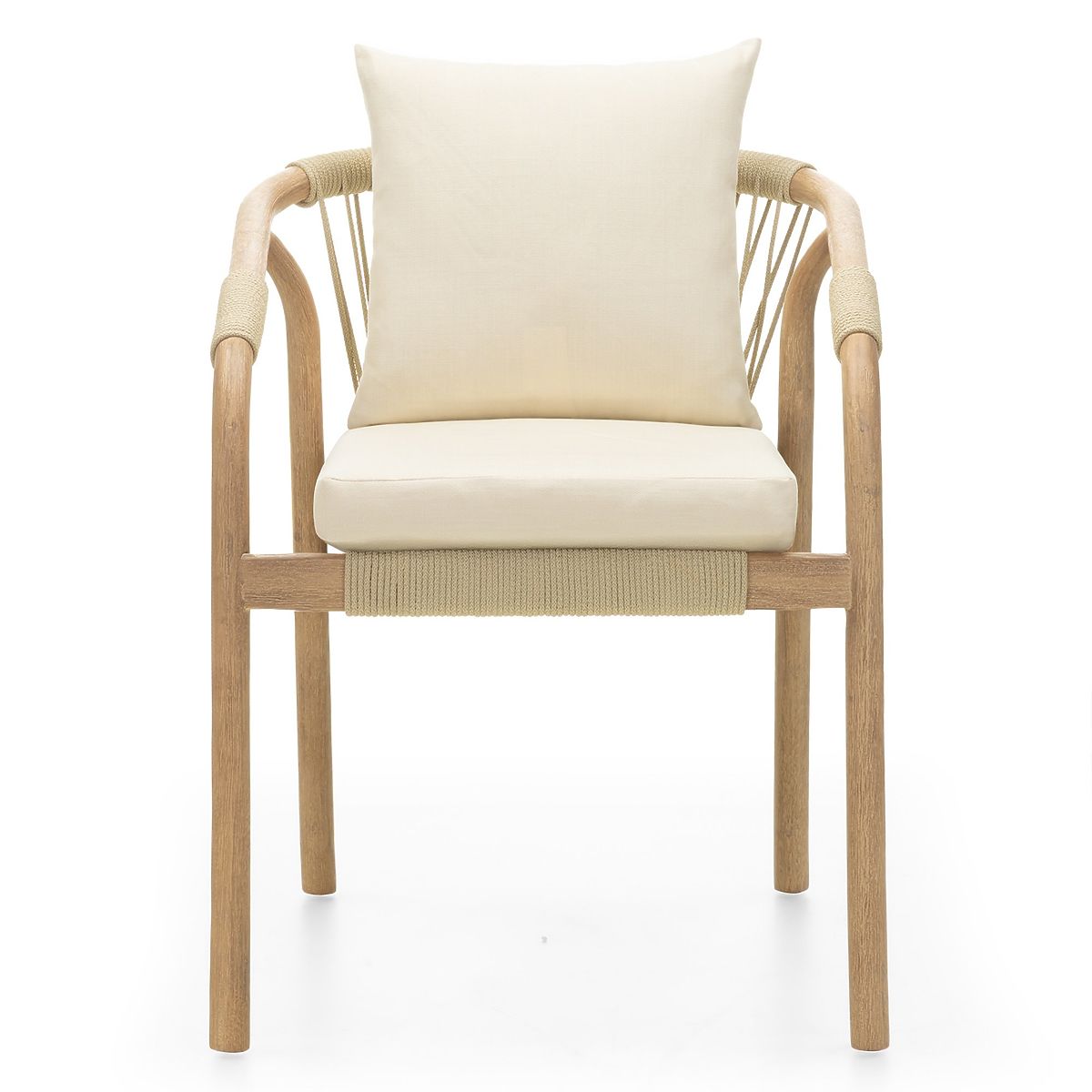 Lukafurniture.cz » Zahradní nábytek / Zahradní židle Rovigo s pleteným provazem, světlé akáciové dřevo/světle béžová, zaoblená