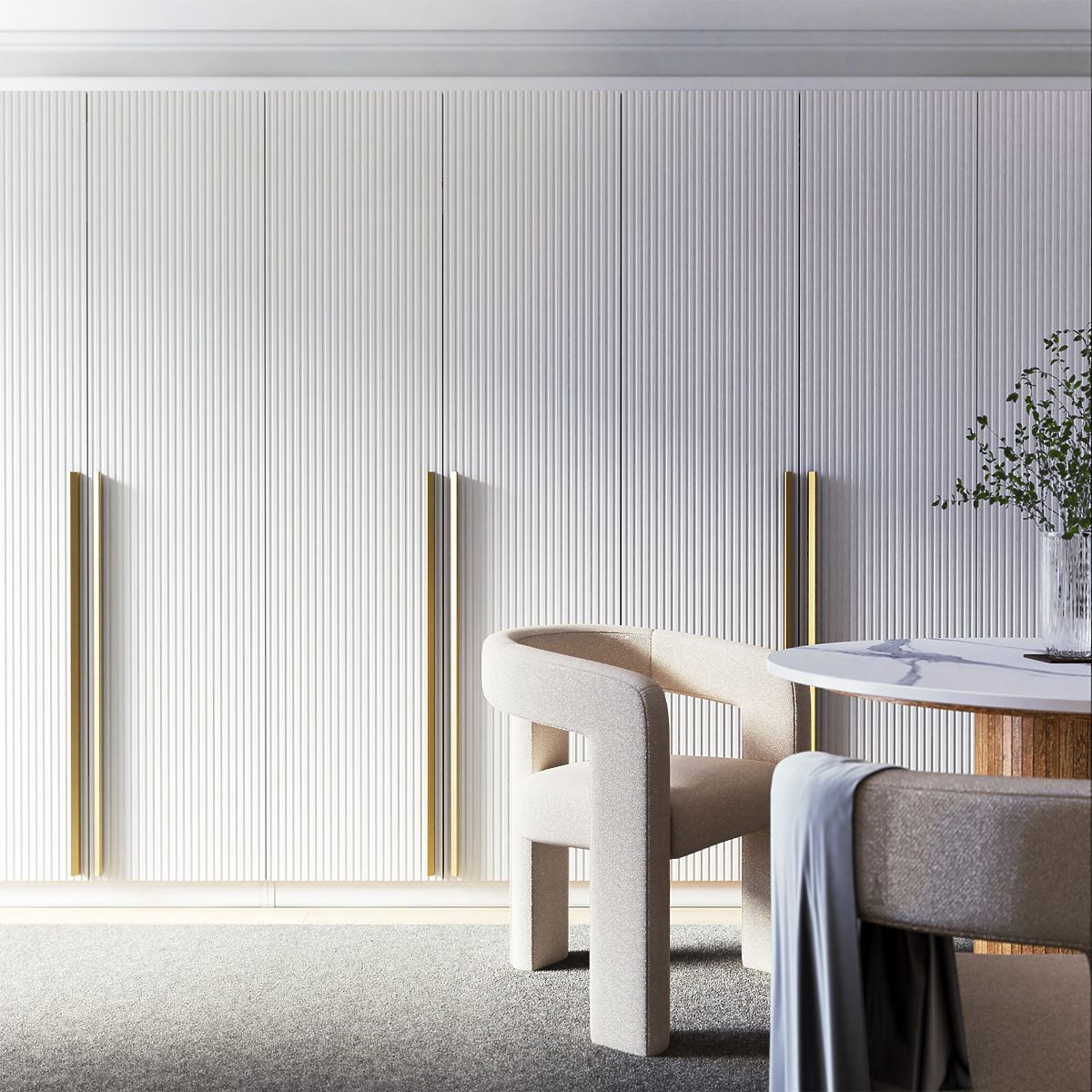 Dveře ke skříni Neroli s dekorativním drážkováním a systémem push to open. .. více