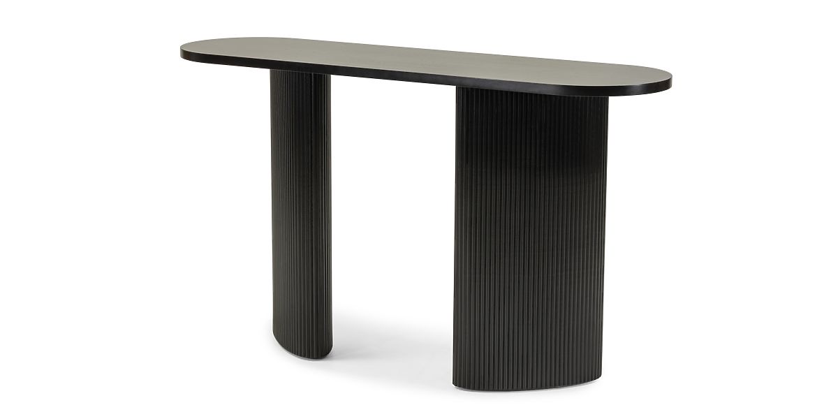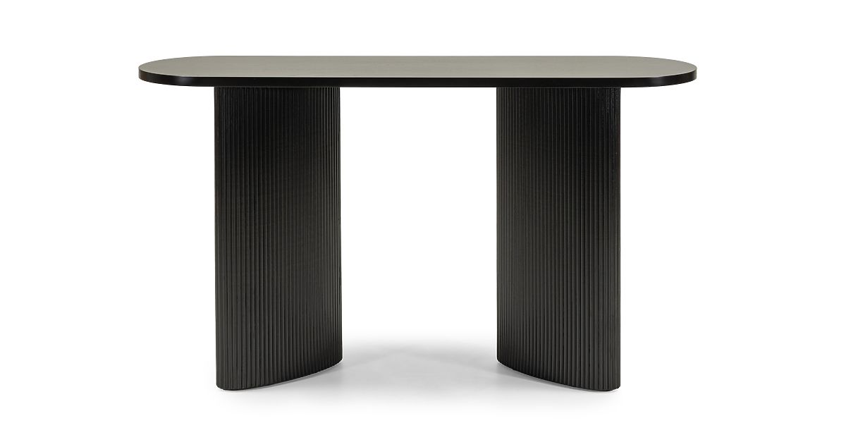 Konzola Pauline je dokonalým příkladem moderní elegance, která okouzlí svou jednoduchostí a stylovými detaily. Její oválná deska ideálně spojuje funkčnost s estetikou a pevné nohy zakončené lamelami jí dodávají jedinečný charakter. Pauline se skvěle hodí jako praktický a stylový prvek předsíně nebo pohodlný psací stůl, který umožňuje komfortní používání bez kompromisů na estetice. Vsaďte na funkčnost a krásu v jednom kusu nábytku – vyberte si konzolu Pauline!