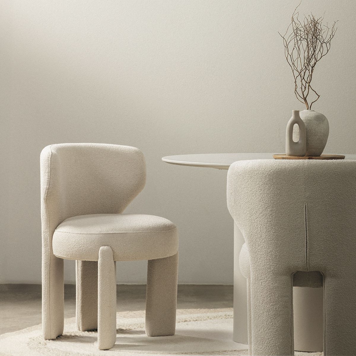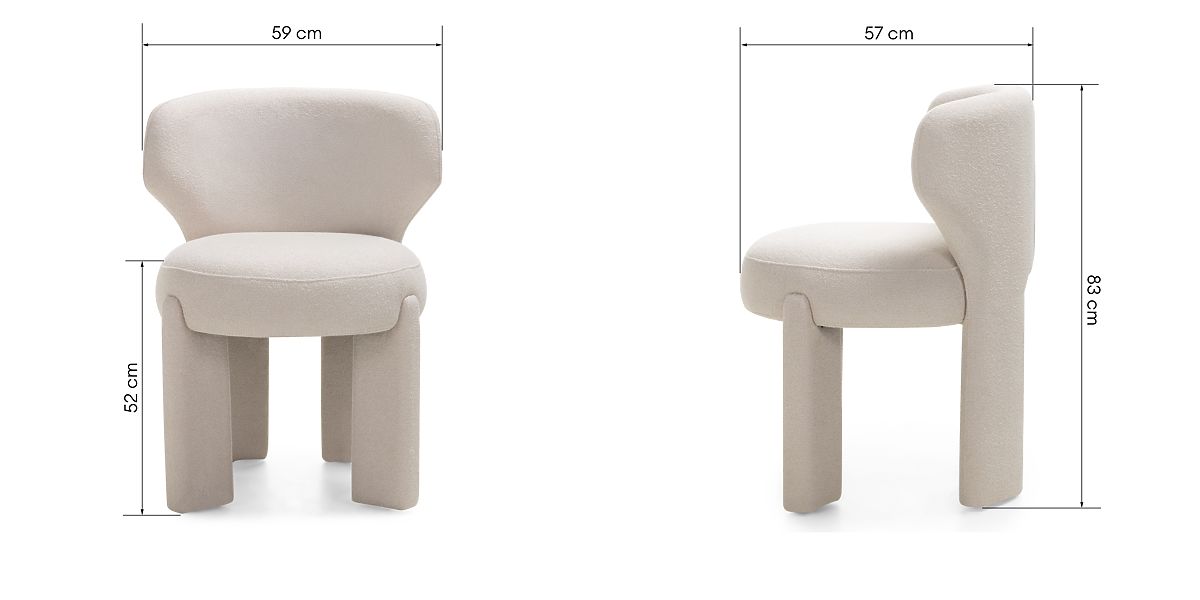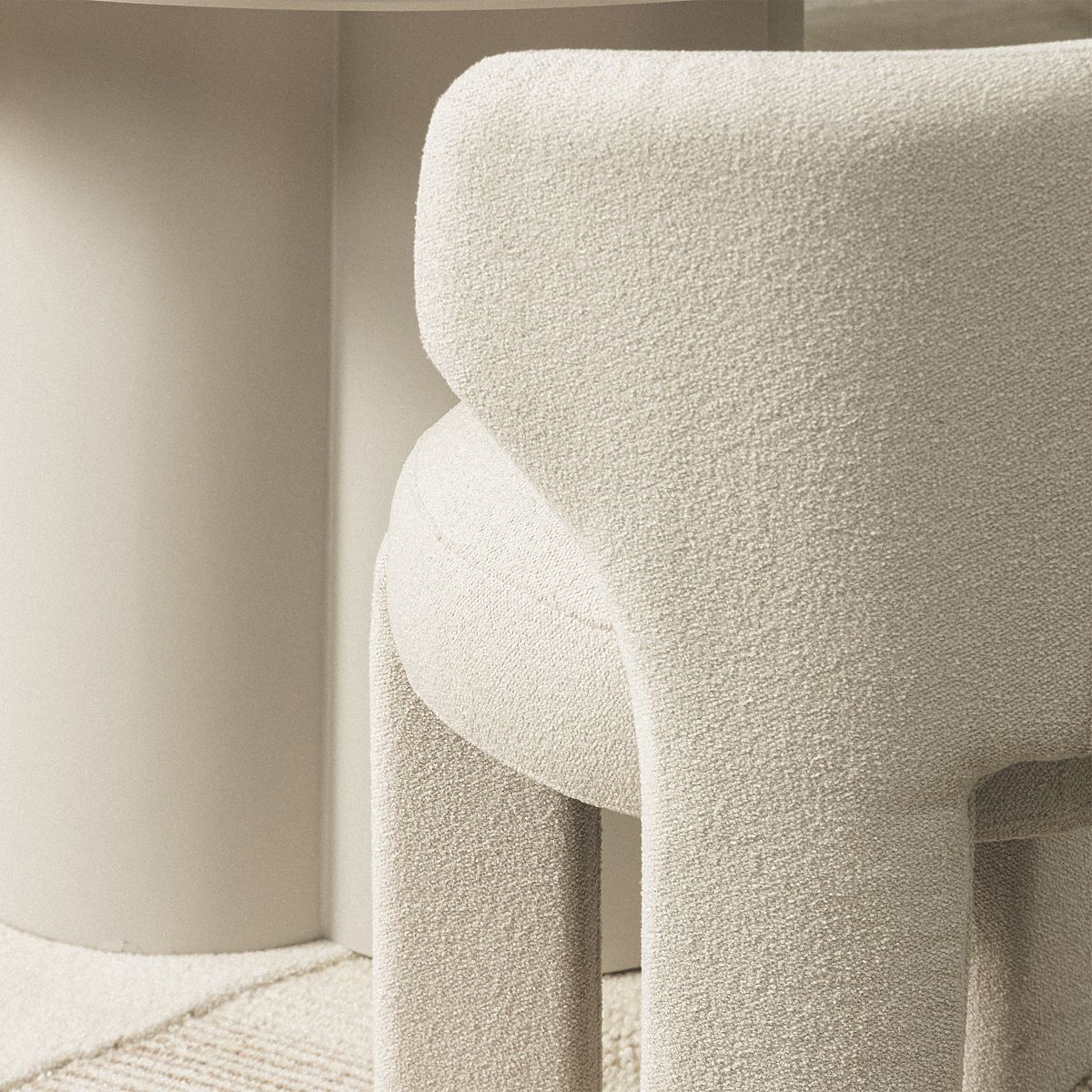 Krémová židle Elaine s oblemi tvary a boucle potahem. .. více