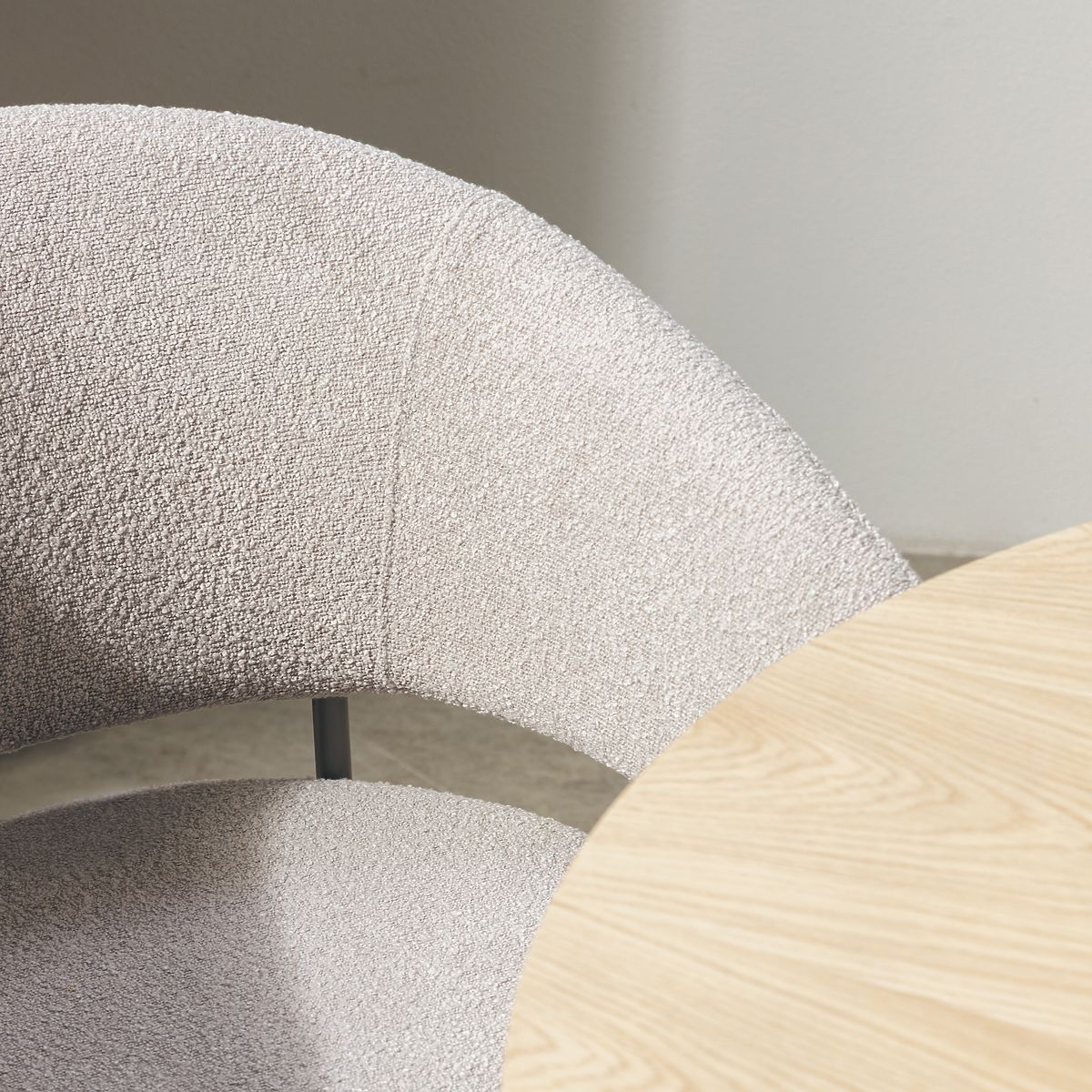 Čalouněná židle Lamu s béžovým bouclé potahem a kovovými nožkami. .. více