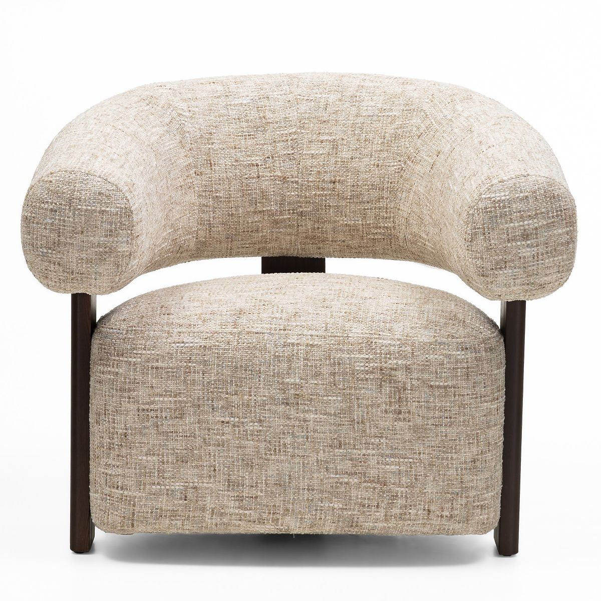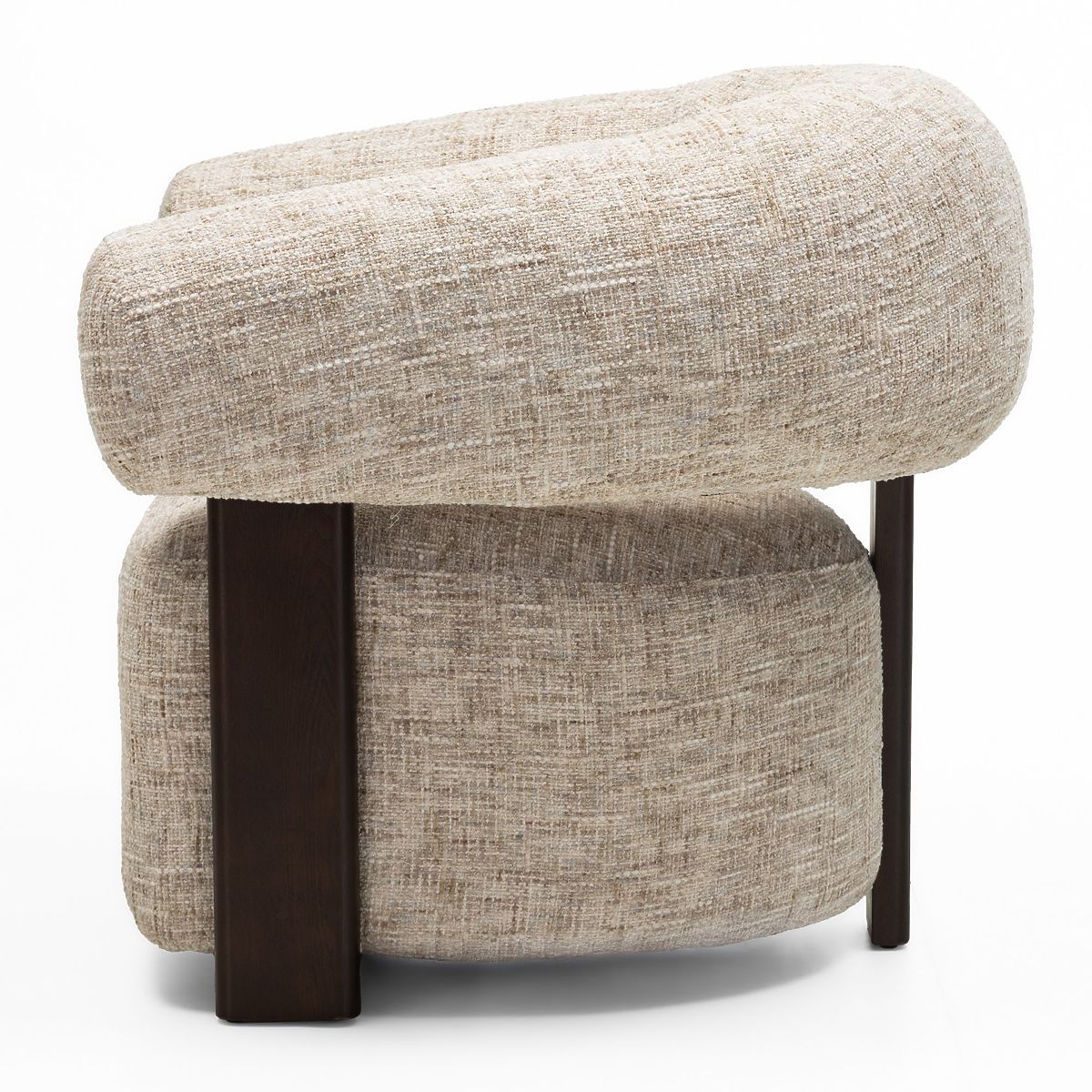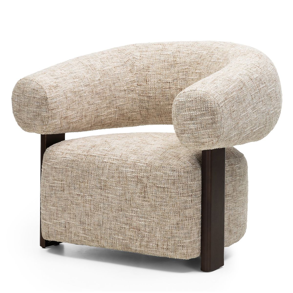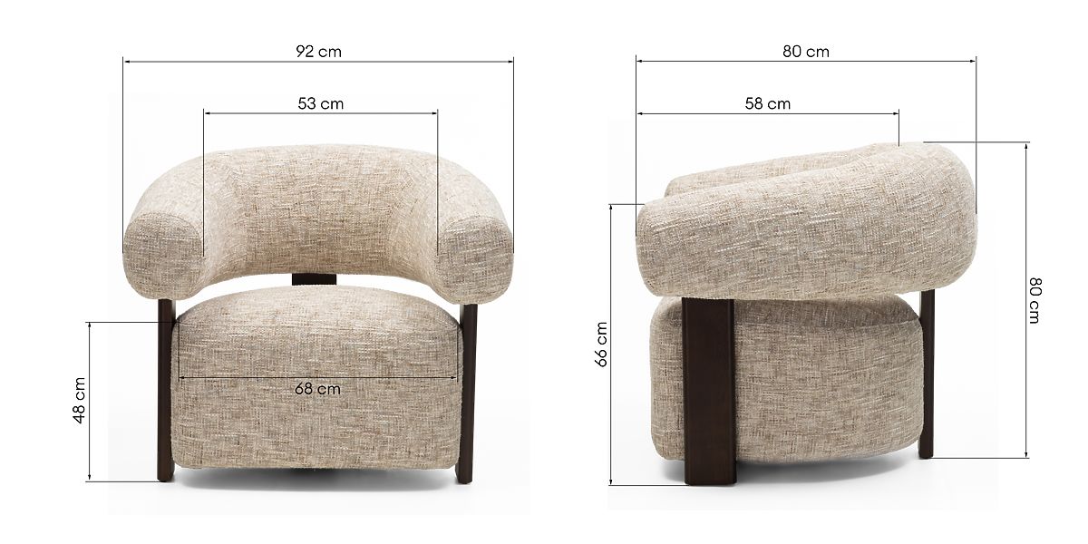 Relaxační křeslo Maribel s oblými tvary a béžovošedou látkou. .. více