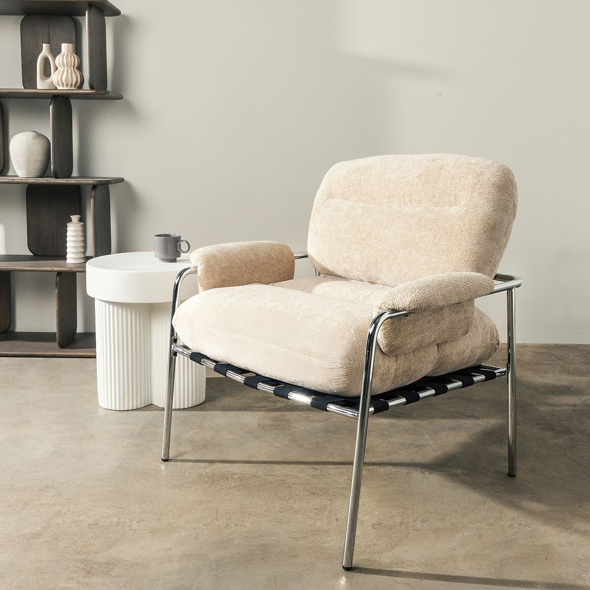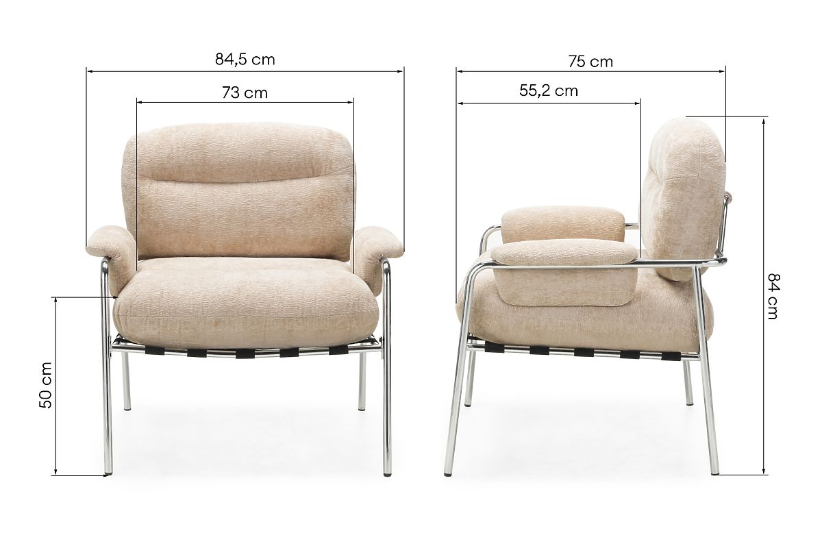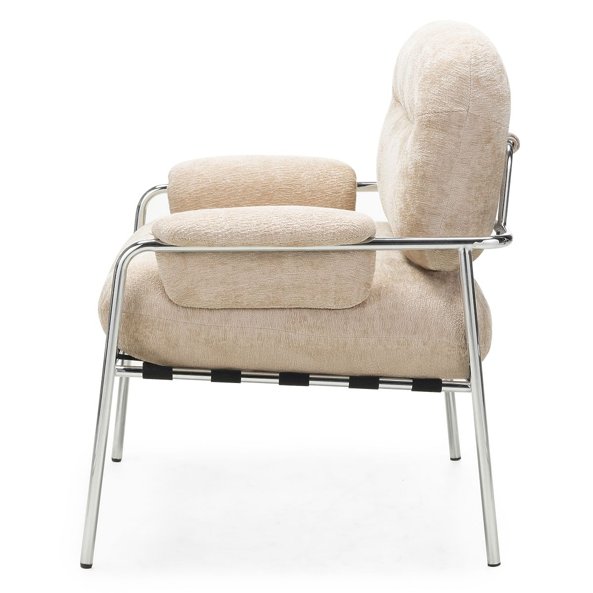Moderní křeslo Inverno s chromovanou konstrukcí a béžovým čalouněním. .. více