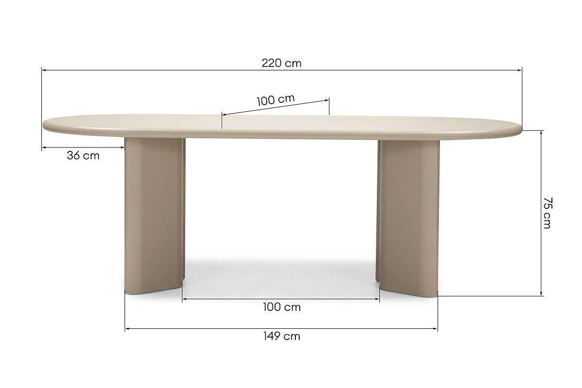 Oválný jídelní stůl Lima 220 cm v tmavě béžové barvě. .. více