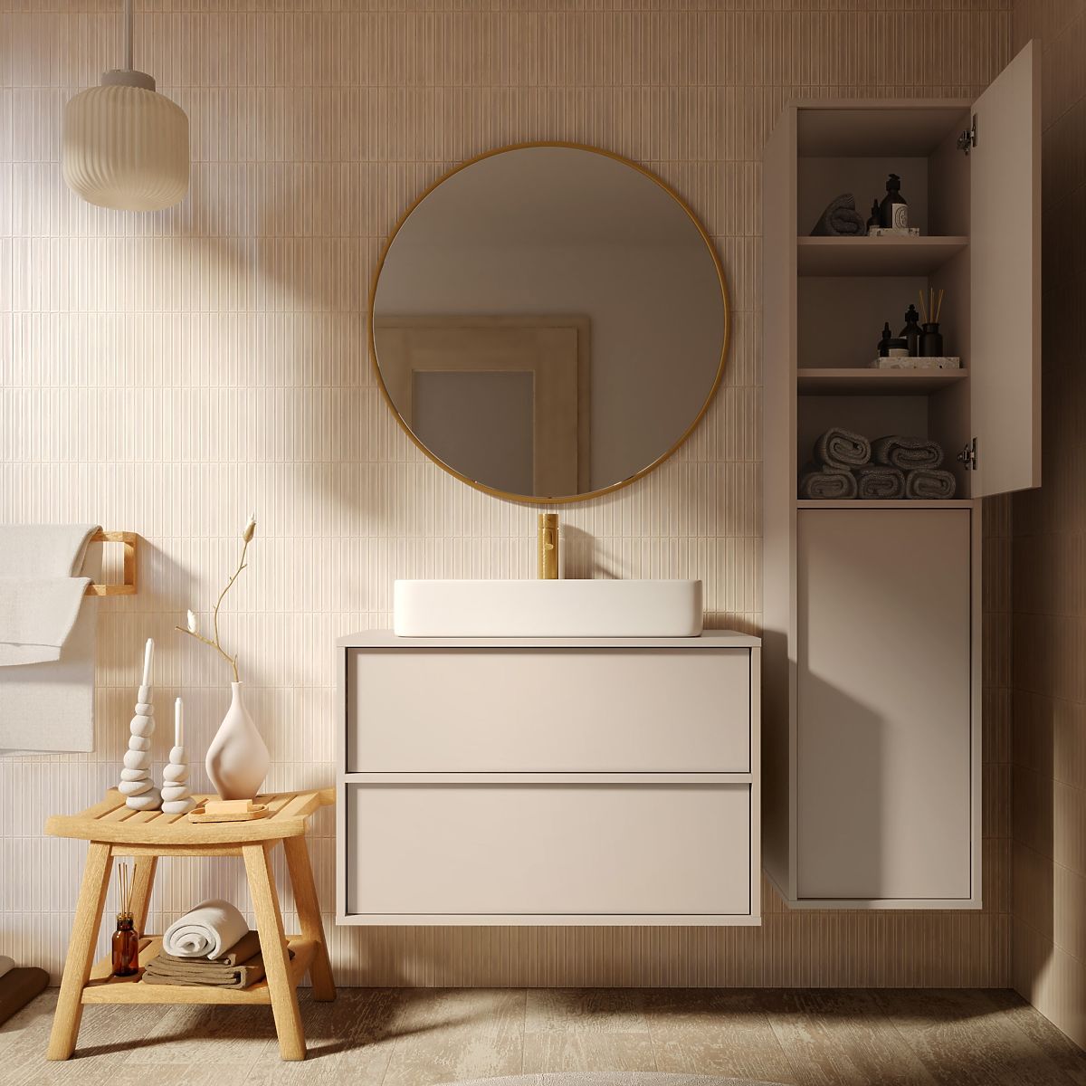 Lukafurniture.cz » Dům / Koupelna / Koupelnové skříňky / Skříňka pod umyvadlo na desku Mossy, 80 cm, kašmír